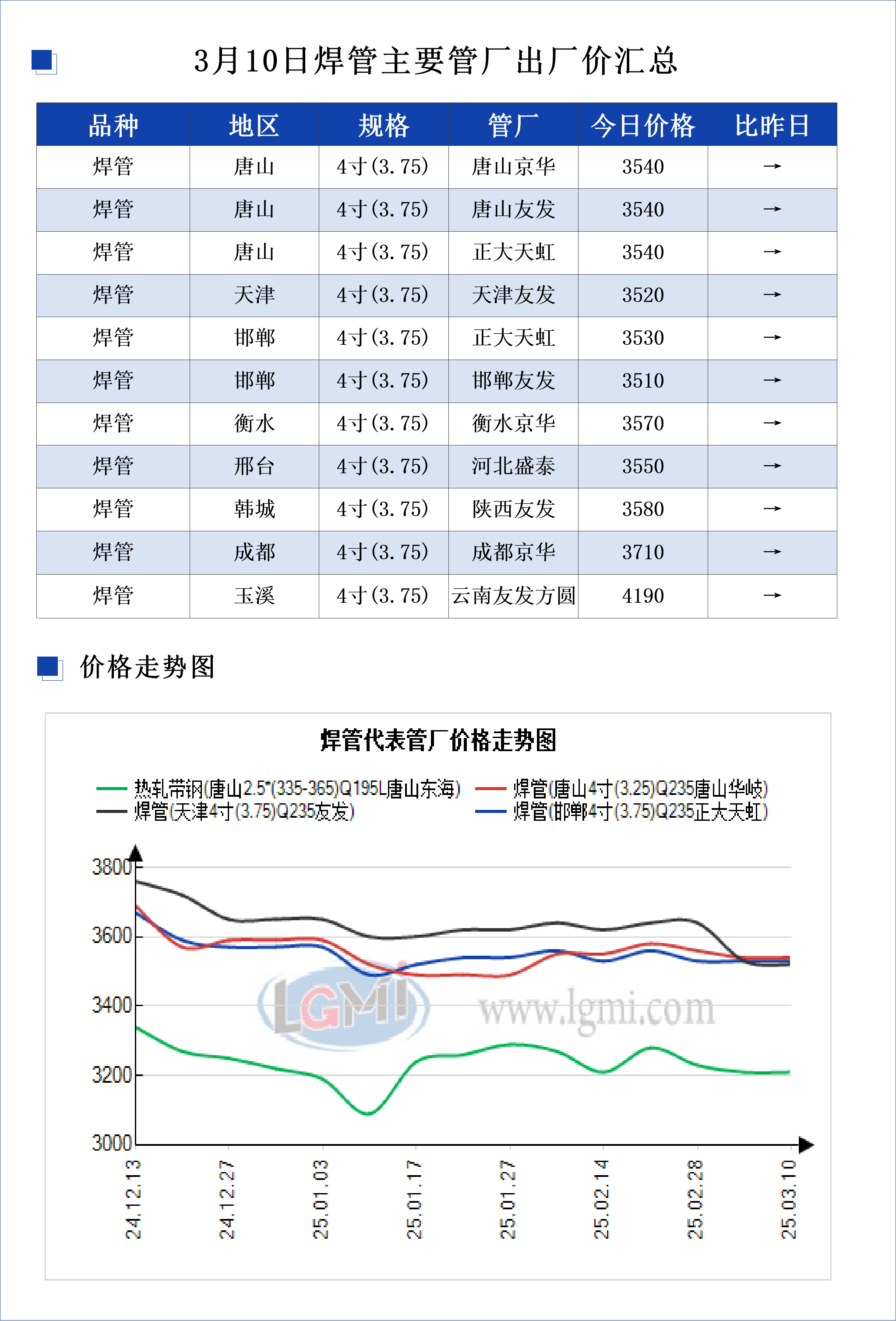 • 3月7日春节后主流焊接钢管及上游出厂价汇总