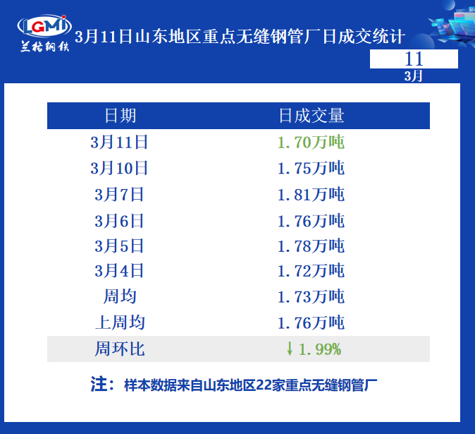 • 3月11日山东地区重点无缝钢管厂日成交统计
