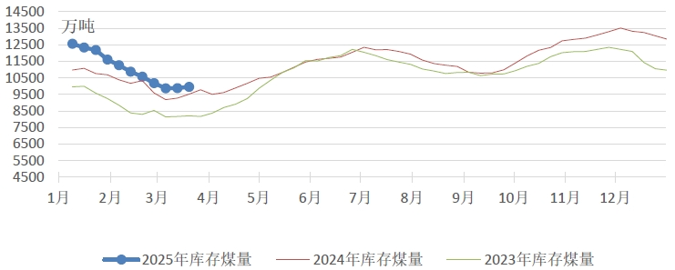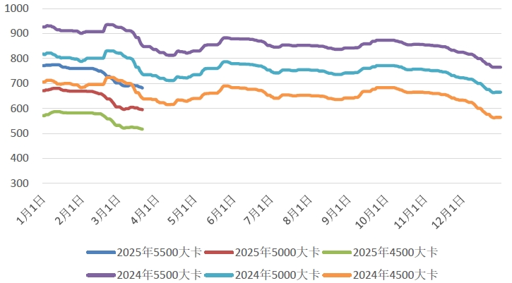 港口市场方面,受铁路运费优惠、气温回升、机组检修等多重因素影响,调出量整体略低于调入量,港口库存高位震荡运行。在现货市场价格全面跌破年度长协价的情况下,多数贸易商对后市煤价看空心态较强,报价持续小幅下调,少数终端企业询货积极性提升,但仍以低价采购为主,实际成交量一般,现货成交价格小幅回调。