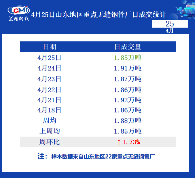 • 4月25日山东地区重点无缝钢管厂日成交统计