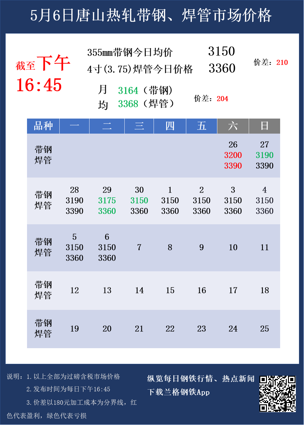 • 5月6日(16:45)唐山热轧带钢与焊管市场成交价格