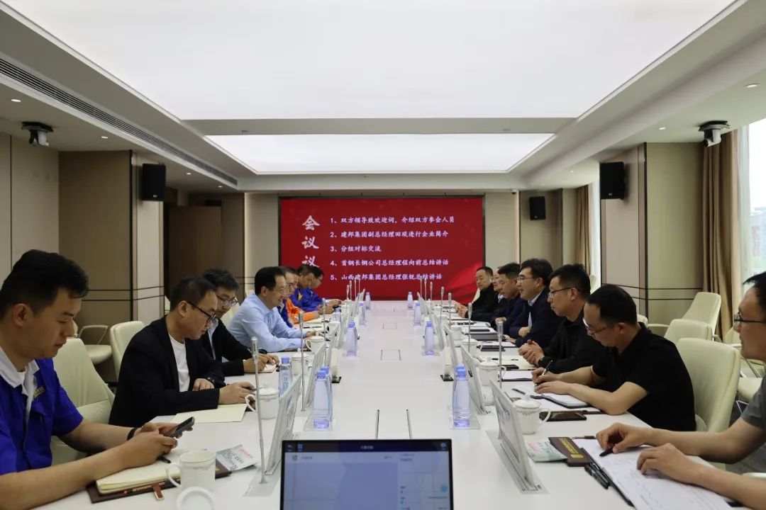 5月12日,首钢长钢公司总经理程向前,总经理助理冯云林等一行七人莅临建邦集团参观交流。集团公司总经理张锐,副总经理田琰及相关单位负责人陪同交流。