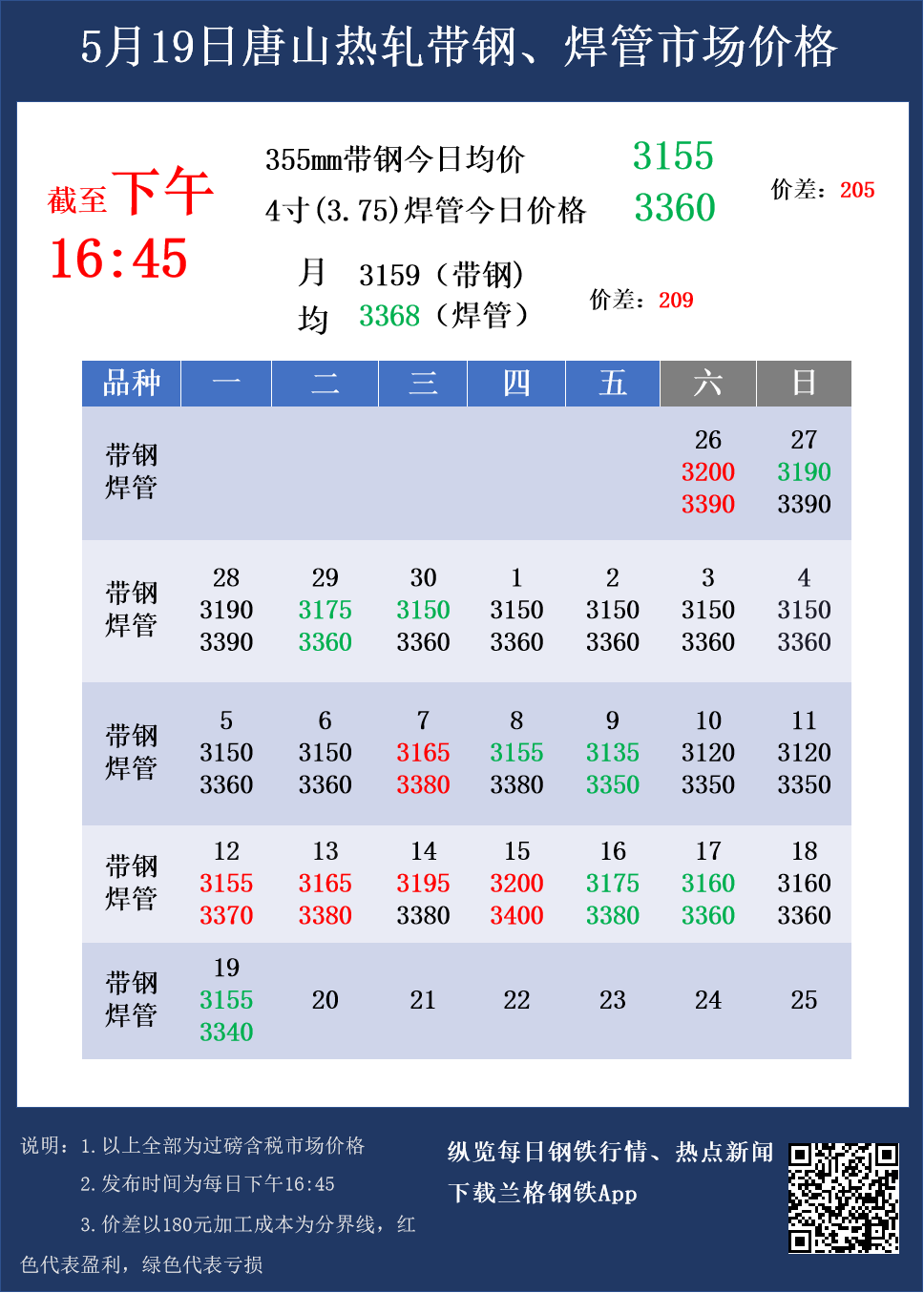 5月19日(16:45)唐山热轧带钢与焊管市场成交价格