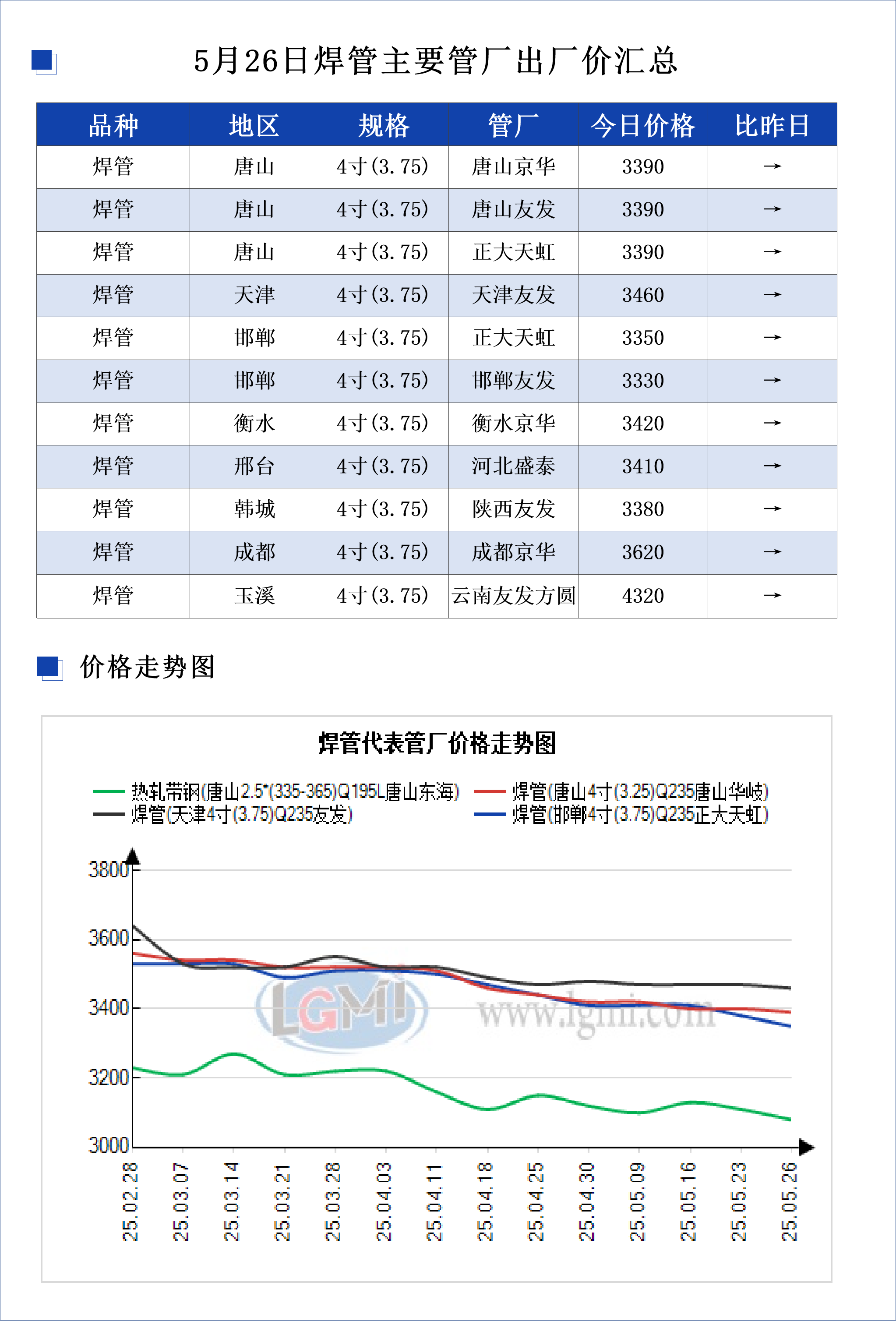 • 5月26日焊管主要管厂出厂价汇总