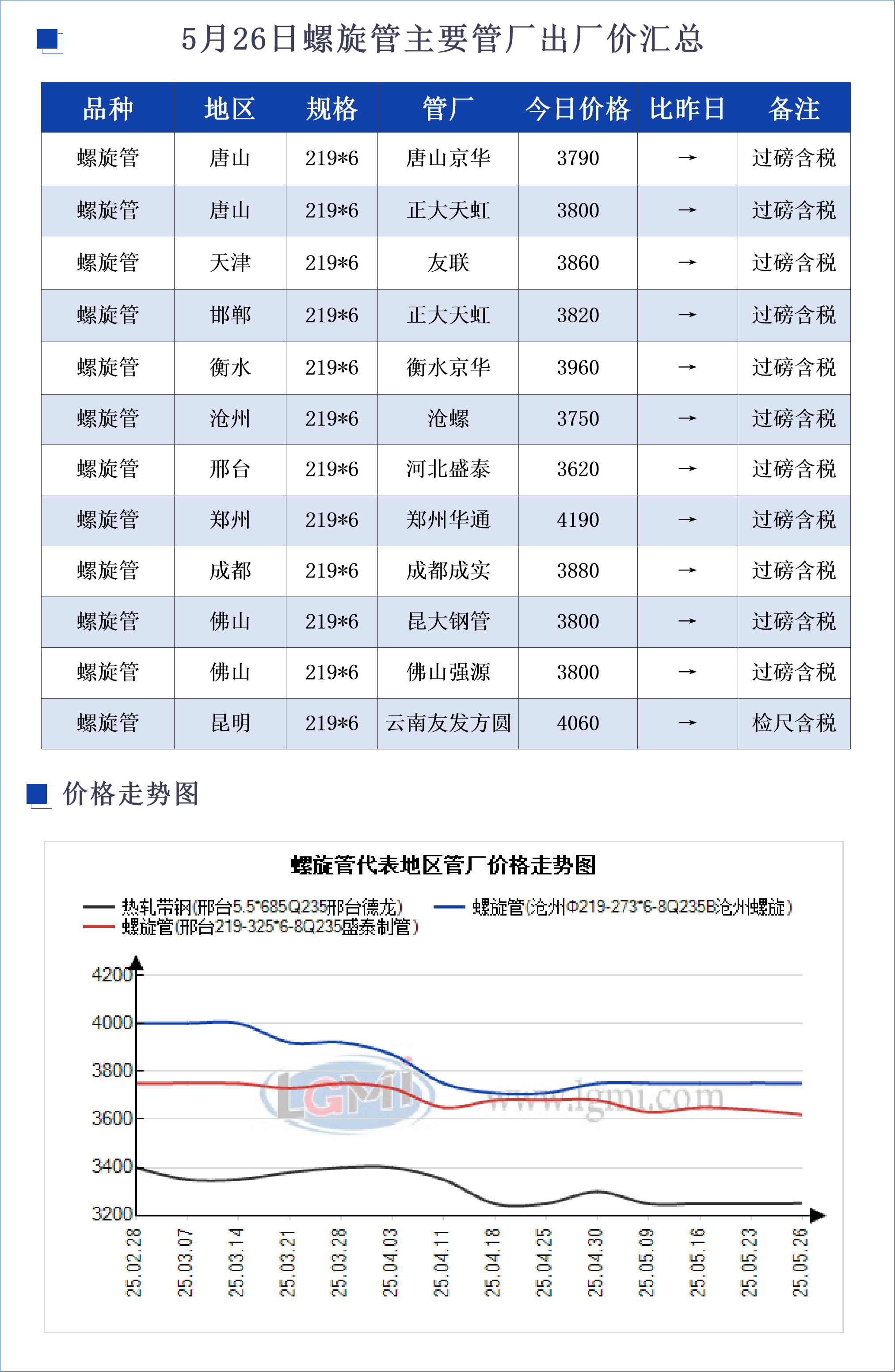 • 5月26日螺旋管主要地区管厂出厂价汇总