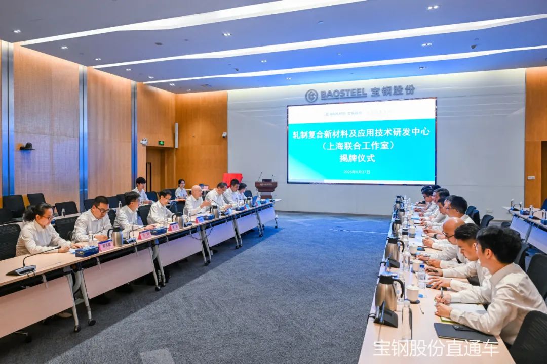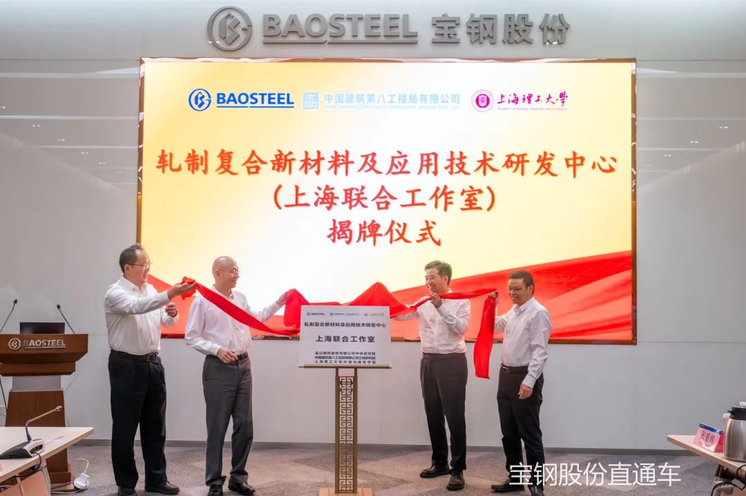 5月27日,轧制复合新材料及应用技术研发中心(上海联合工作室)揭牌仪式在宝钢股份举行,正式开启了宝钢股份中央研究院与中建八局工程研究院和上海理工大学环境与建筑学院的密切合作。宝钢股份党委常委、副总经理,中央研究院党委书记、院长吴军,中建八局副总工程师刘永福,上海理工大学副校长岳海洋等共同见证这一重要时刻。