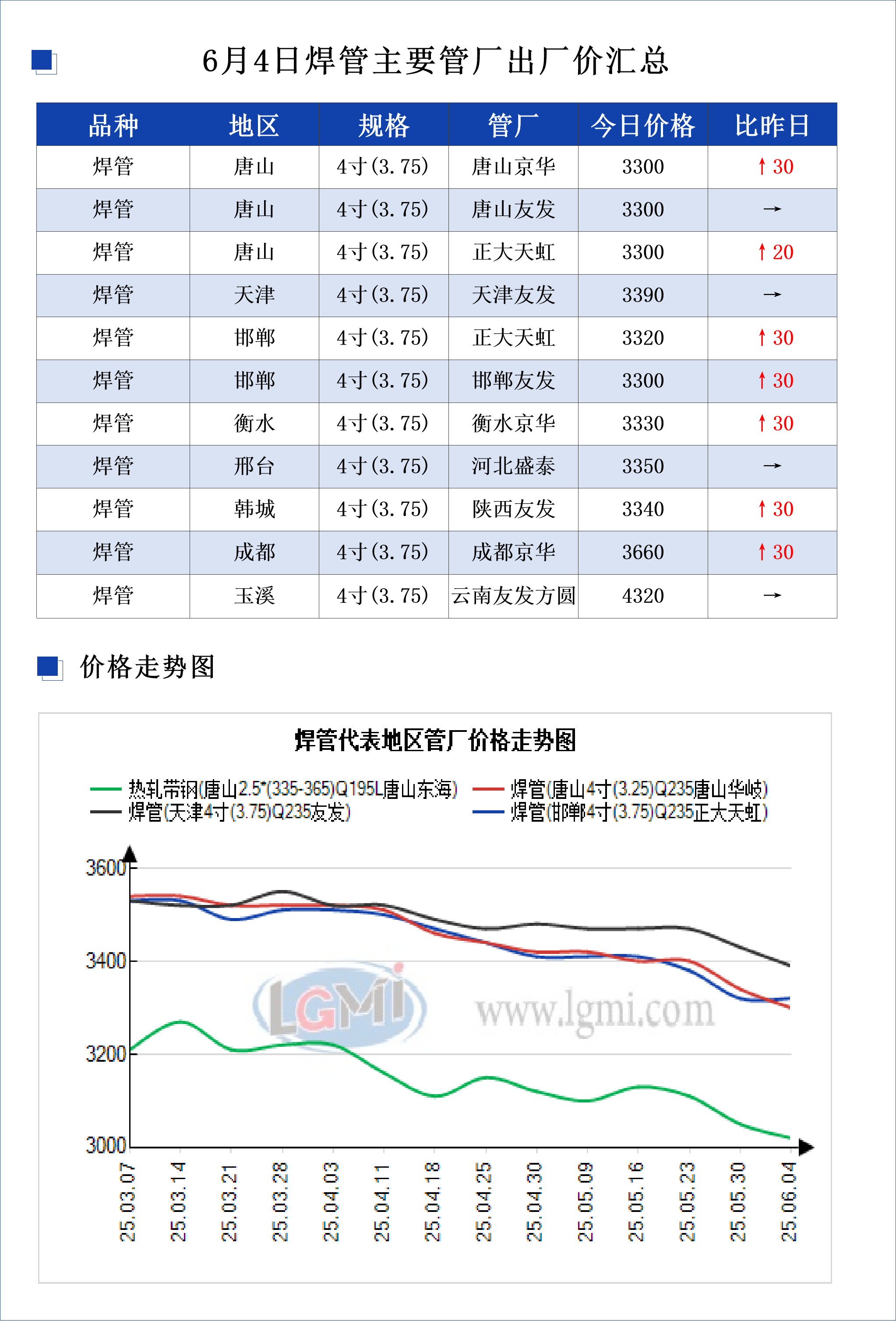 • 6月4日焊管主要管厂出厂价汇总