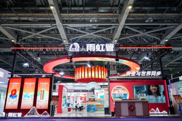 本次展会,雨虹管发布了两款全新升级的PPR抗菌管道——“囍管”与“吉管”,因其喜庆、艳丽的外观而备受关注。