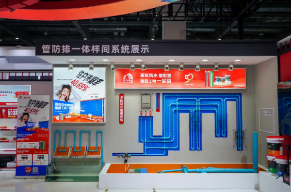 雨虹展厅现场模拟了“防水层问题、管道问题、接口漏水”三种漏水场景。潘佳介绍,针对传统施工中管道与防水分属不同环节,责任模糊、售后困难,的消费者漏水痛点,东方雨虹推出管防一体系统解决方案,整合管道与防水产品与技术,为选择雨虹的消费者提供管道交付服务、防水交付服务。