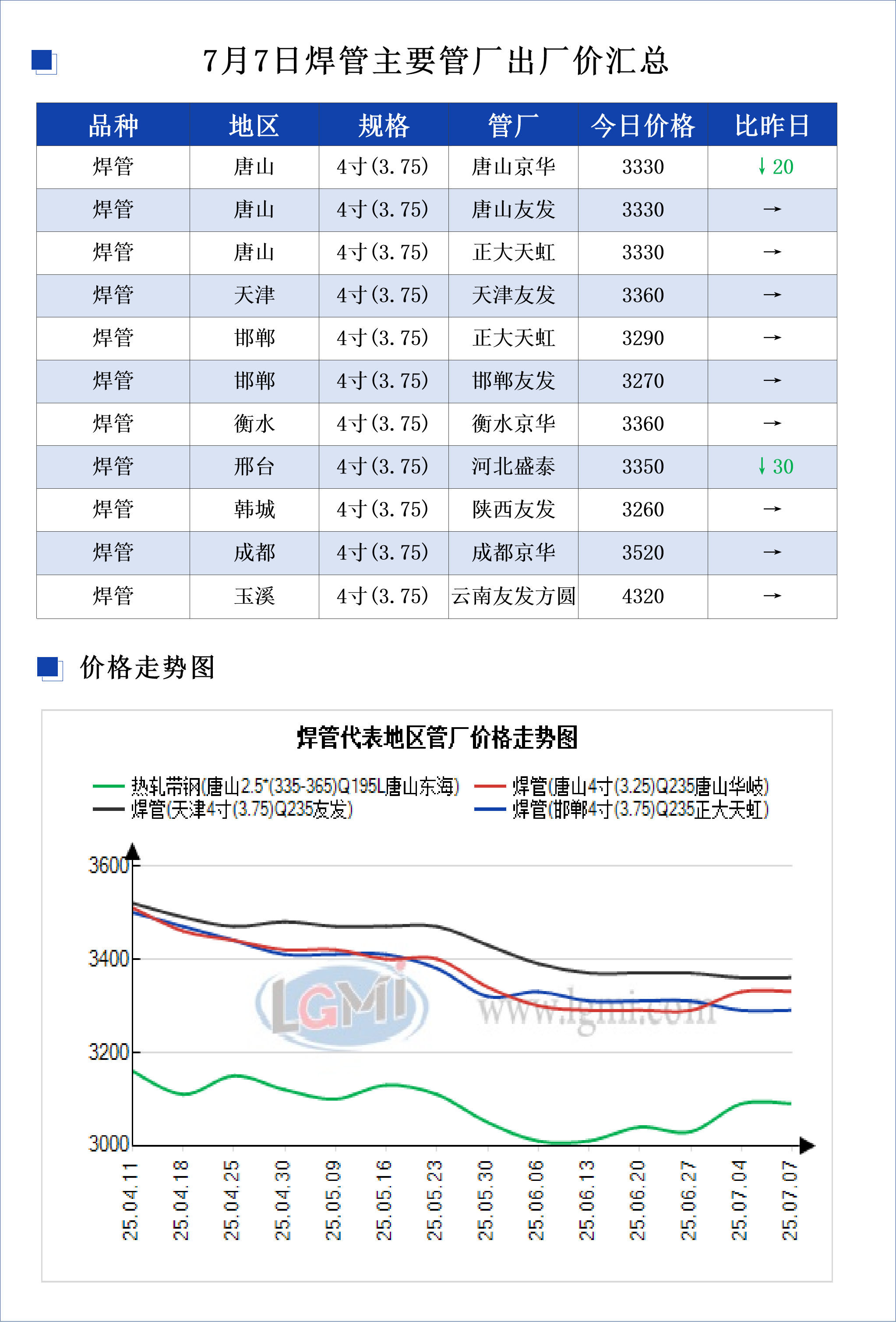 • 7月7日天津友发钢管集团股份有限公司第一分公司出厂价下调20元