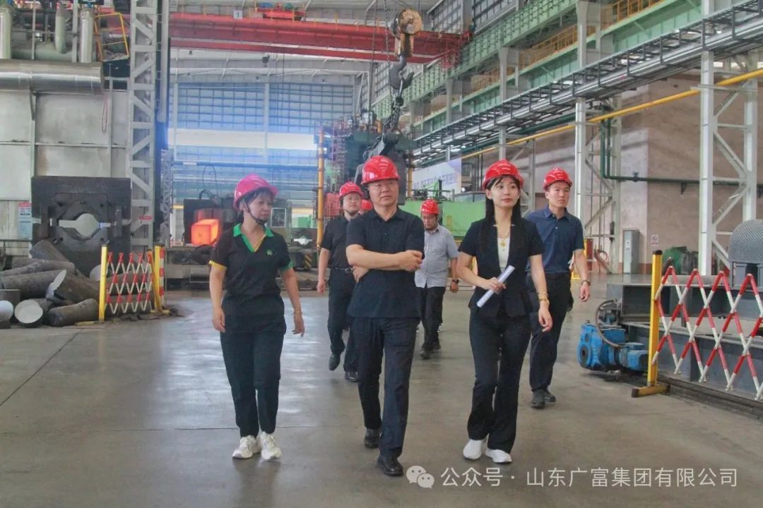 调研组实地调研了山东广富集团琳海20万吨锻件项目的建设及发展情况,对公司技术创新、当前面临困难及“十五五”时期重大项目建设、未来产业规划布局情况进行了全面了解。调研组对广富集团“十四五”时期取得的成绩进行了充分肯定,并就滨州市工业和信息化“十五五”发展规划编制工作与企业代表进行了深入探讨,鼓励企业在“十五五”时期抗牢责任,强抓机遇,迎难而上,充分发挥龙头企业的“头雁作用”,不断延链补链强链,擦亮广富集团工业化底色。