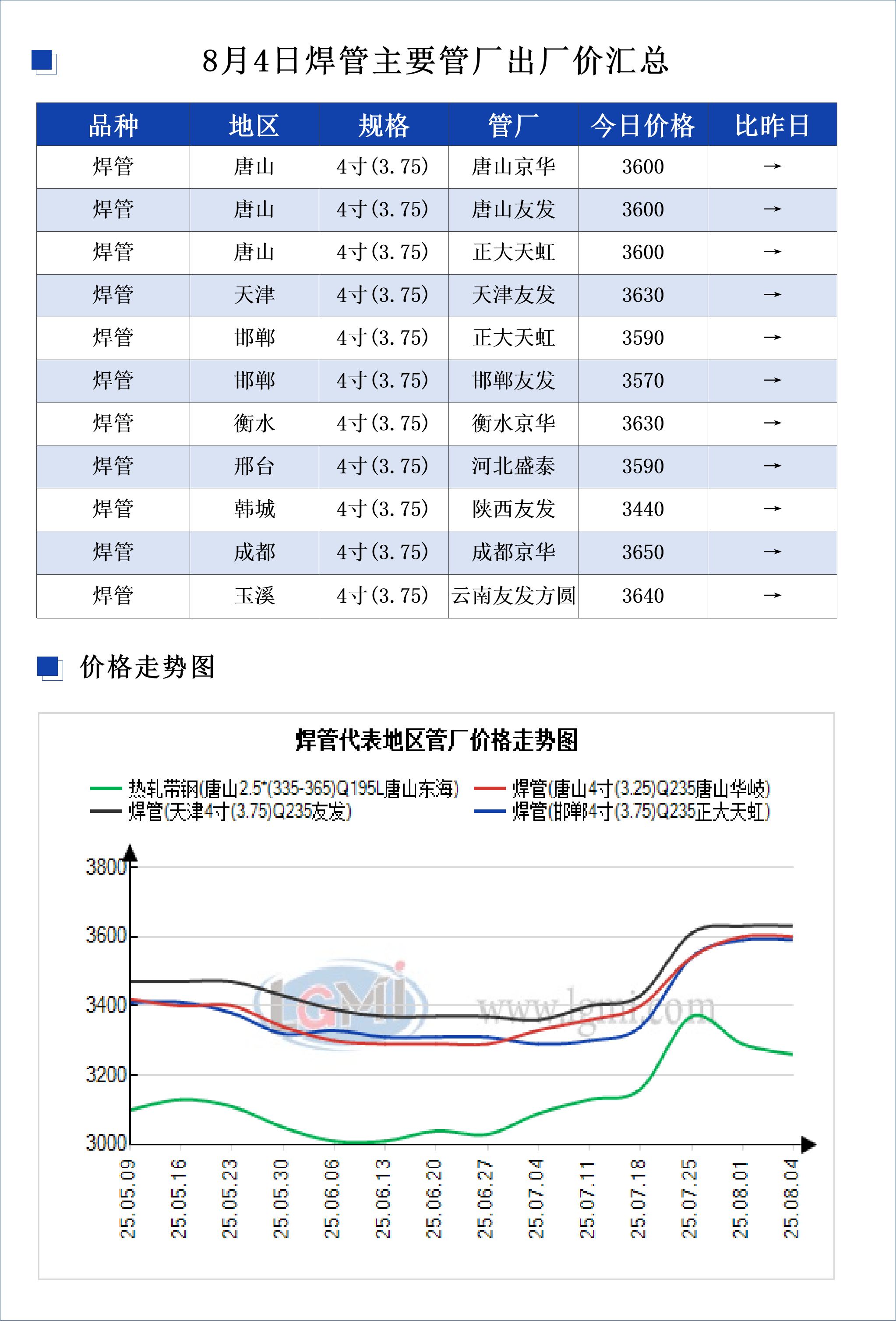 • 8月1日天津友发钢管集团股份有限公司第一分公司出厂价下调30元