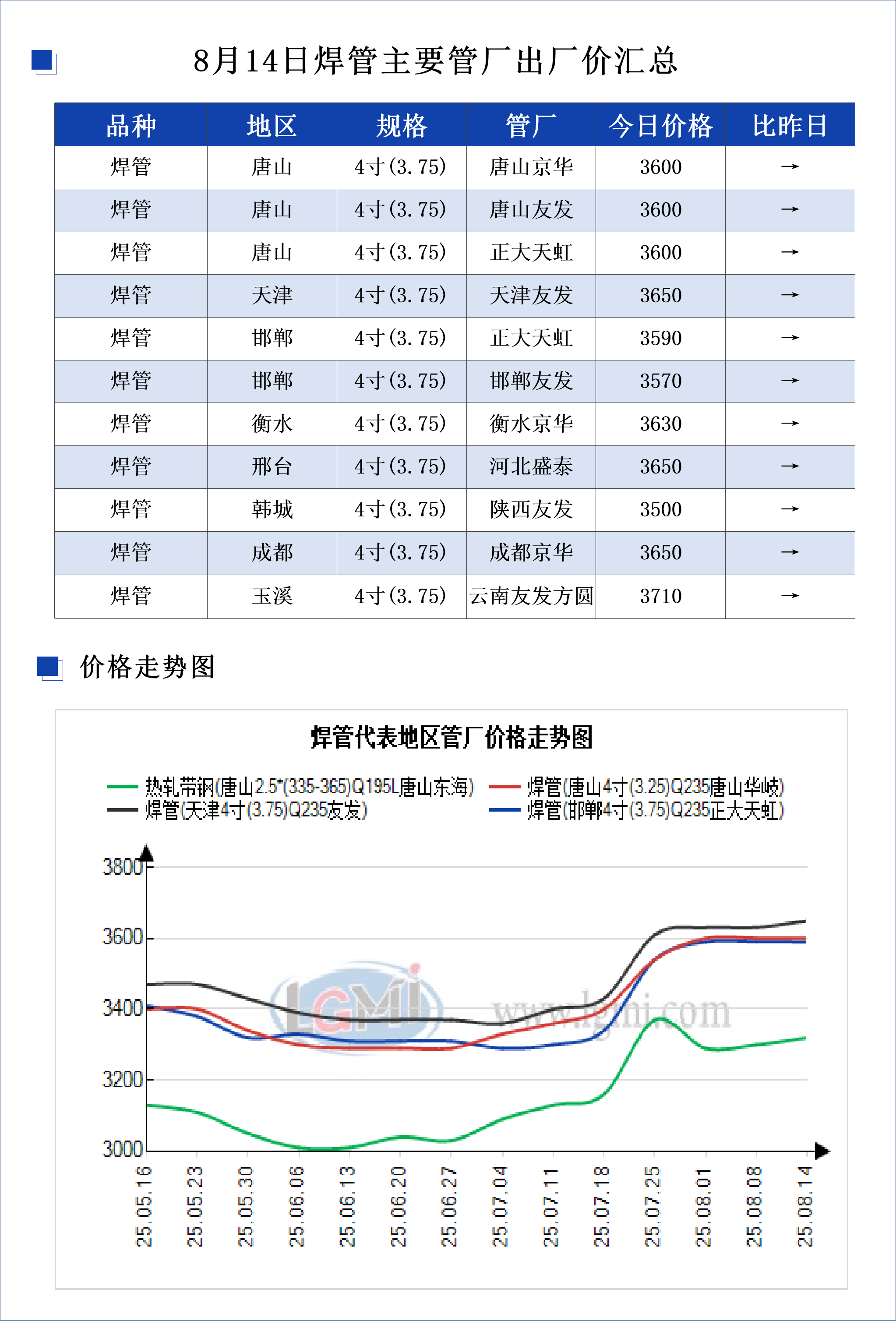 • 8月14日焊管主要管厂出厂价汇总