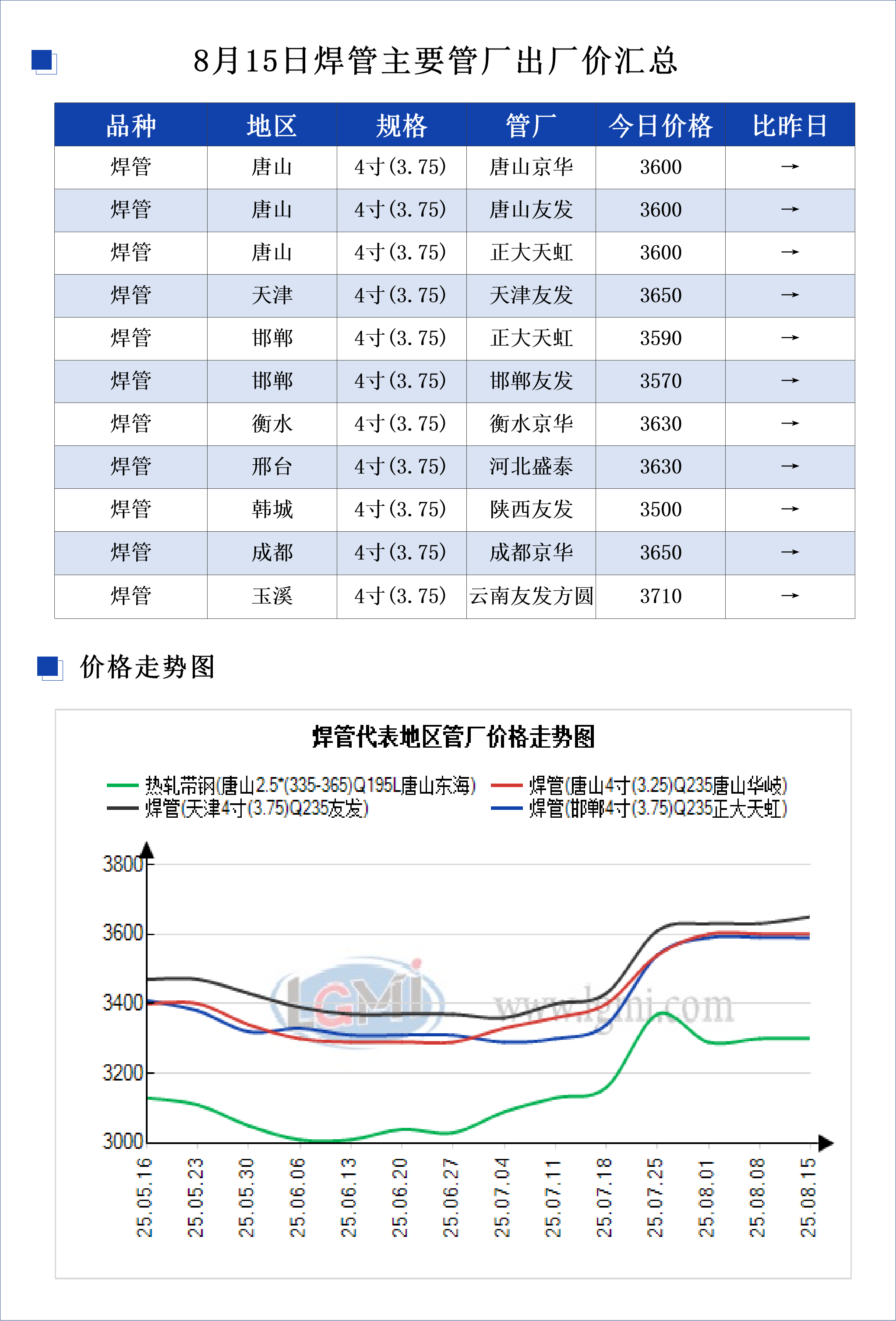 • 8月12日天津友发钢管集团股份有限公司第一分公司出厂价上调20元
