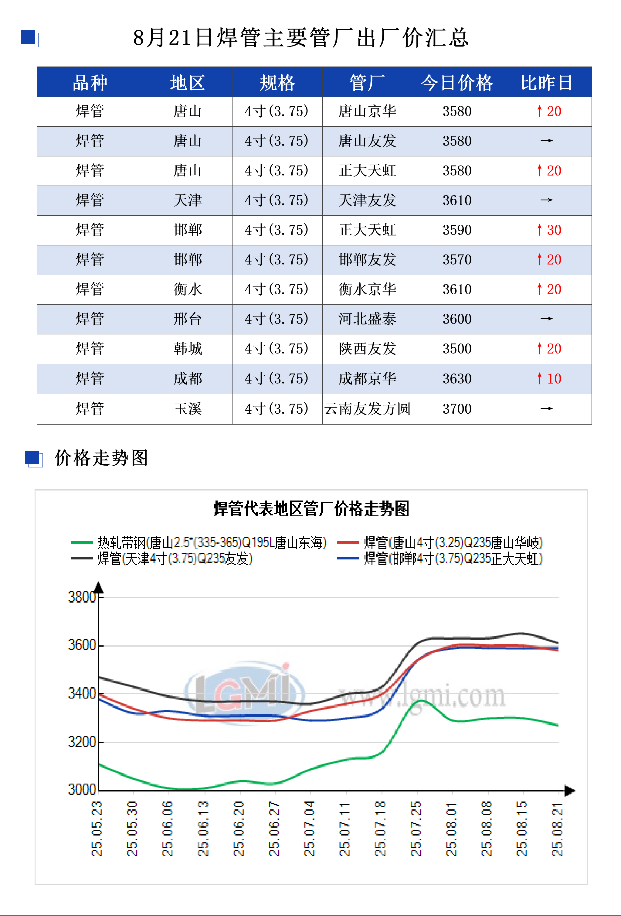 • 8月21日焊管主要管厂出厂价汇总