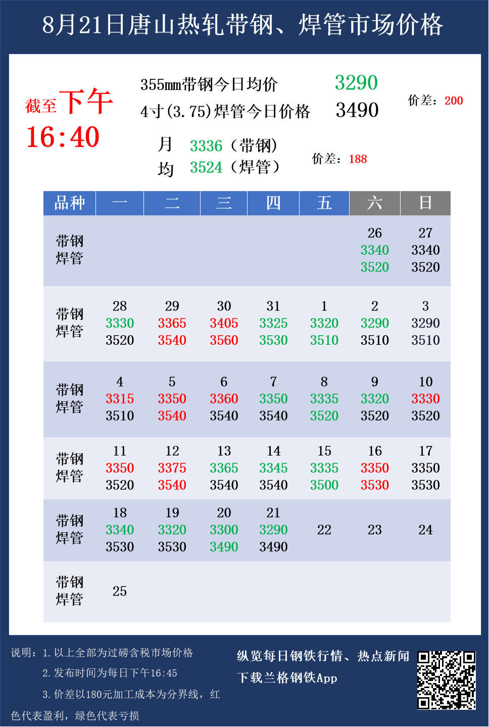 8月21日(16:40)唐山热轧带钢与焊管市场成交价格
