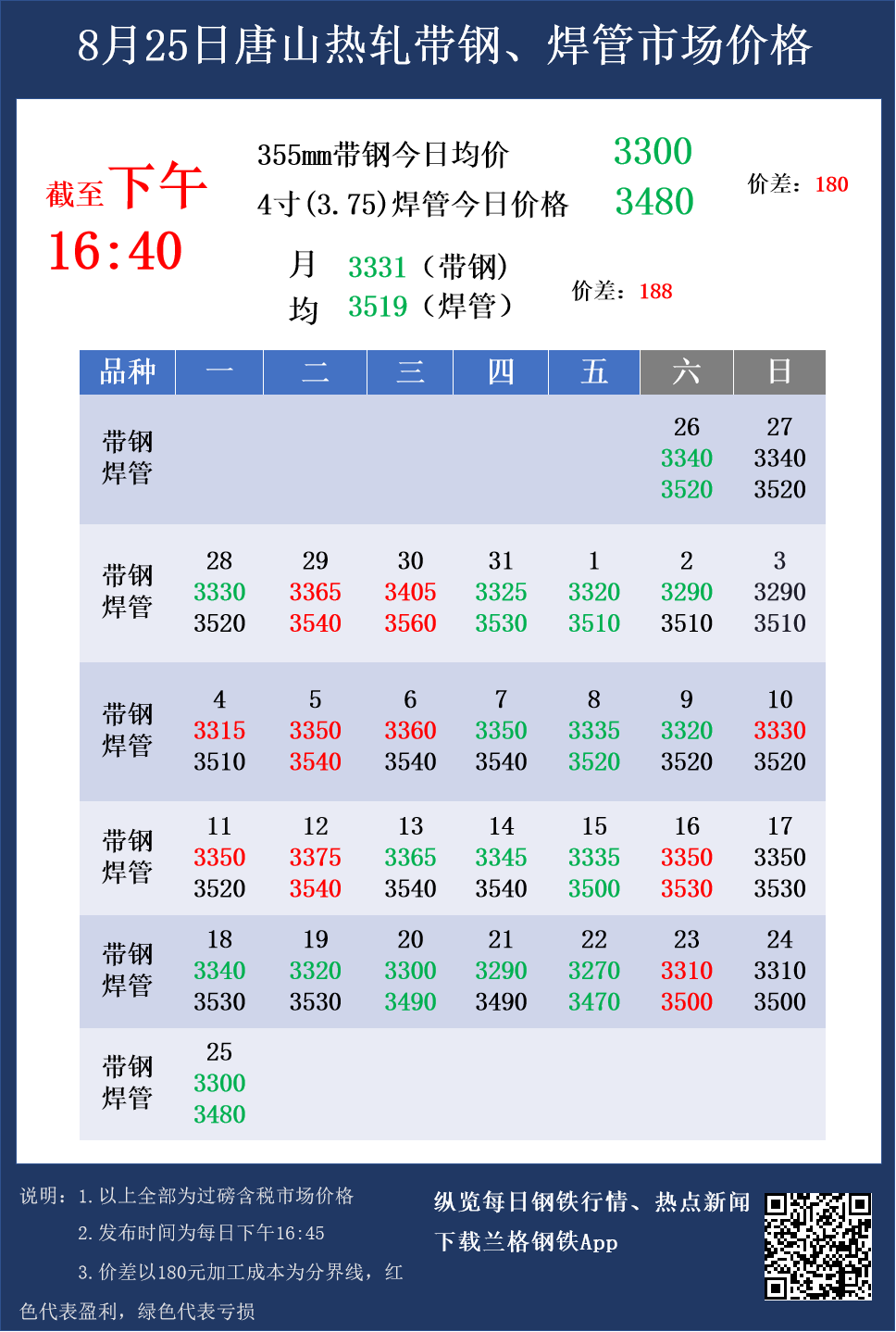 8月25日(16:40)唐山热轧带钢与焊管市场成交价格