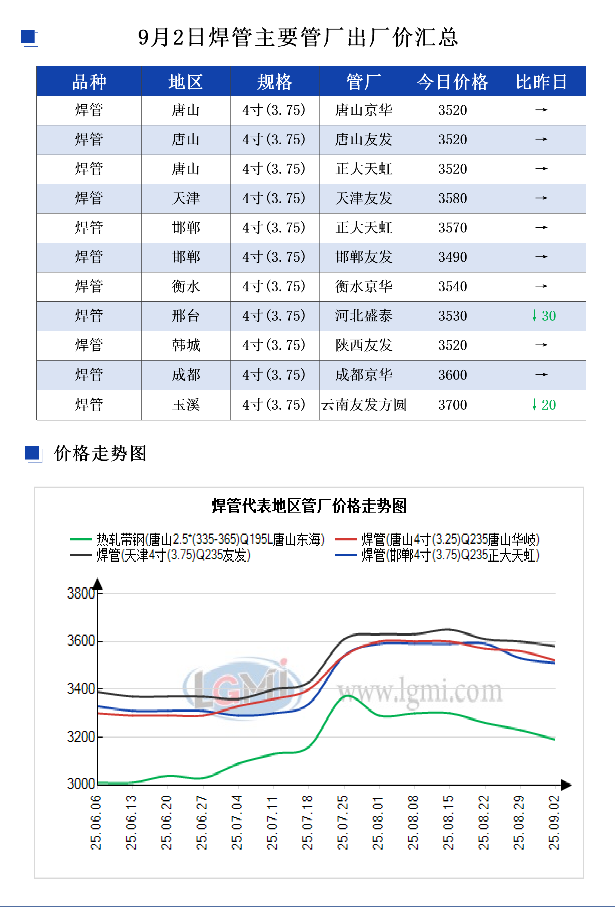 • 9月1日焊管主要管厂出厂价汇总