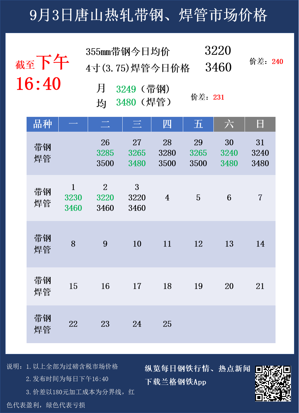 • 9月3日(16:40)唐山热轧带钢与焊管市场成交价格