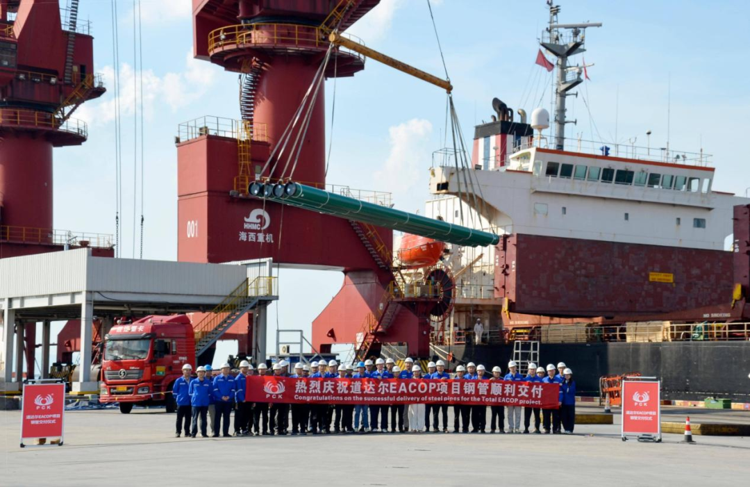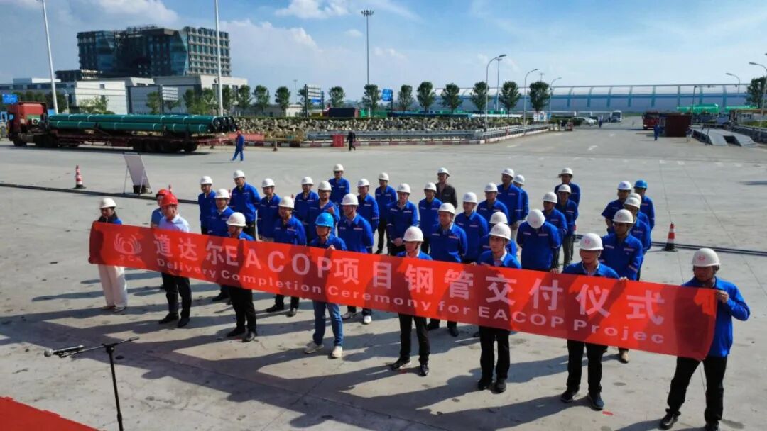 交付仪式启幕,共鉴“东非能源动脉”供货收官 当日下午3时18分,伴随着门机吊装作业的轰鸣声,交付仪式正式拉开序幕,项目相关人员列队欢庆,现场氛围热烈。连云港公司董事长郭小龙在仪式上表示,EACOP项目是近年来非洲极具影响力的大型能源项目,珠江钢管承接项目全线钢管生产任务,深感使命光荣、责任重大。自承接任务以来,公司始终围绕“保供、保质、创新、创效”目标,以生产、运输两大任务执行为主线,全力以赴保障项目顺利推进。