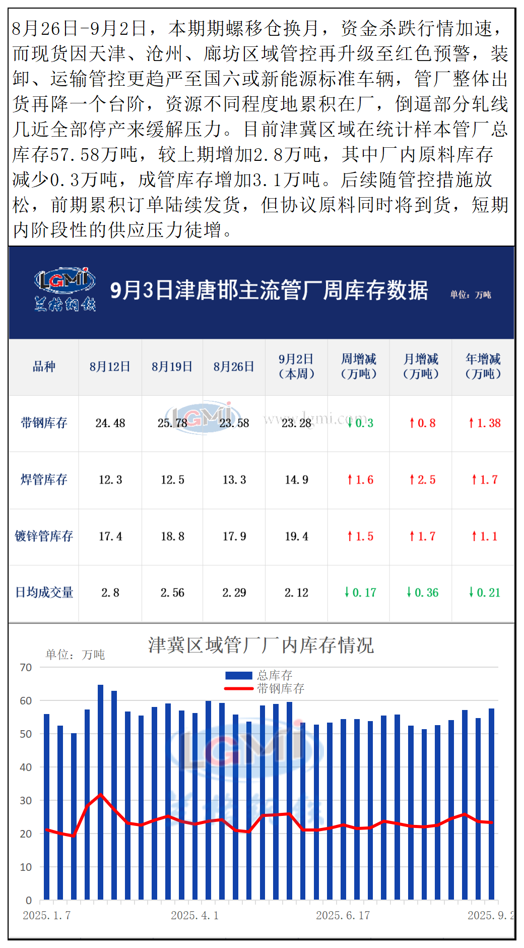 兰格调研:津冀区域焊镀管厂出货受限 倒逼减产增多