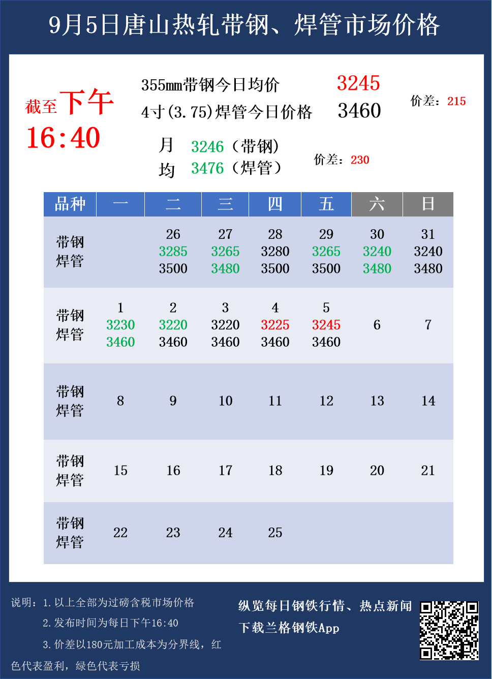 • 9月5日主流焊接钢管及上游品种出厂价格汇总