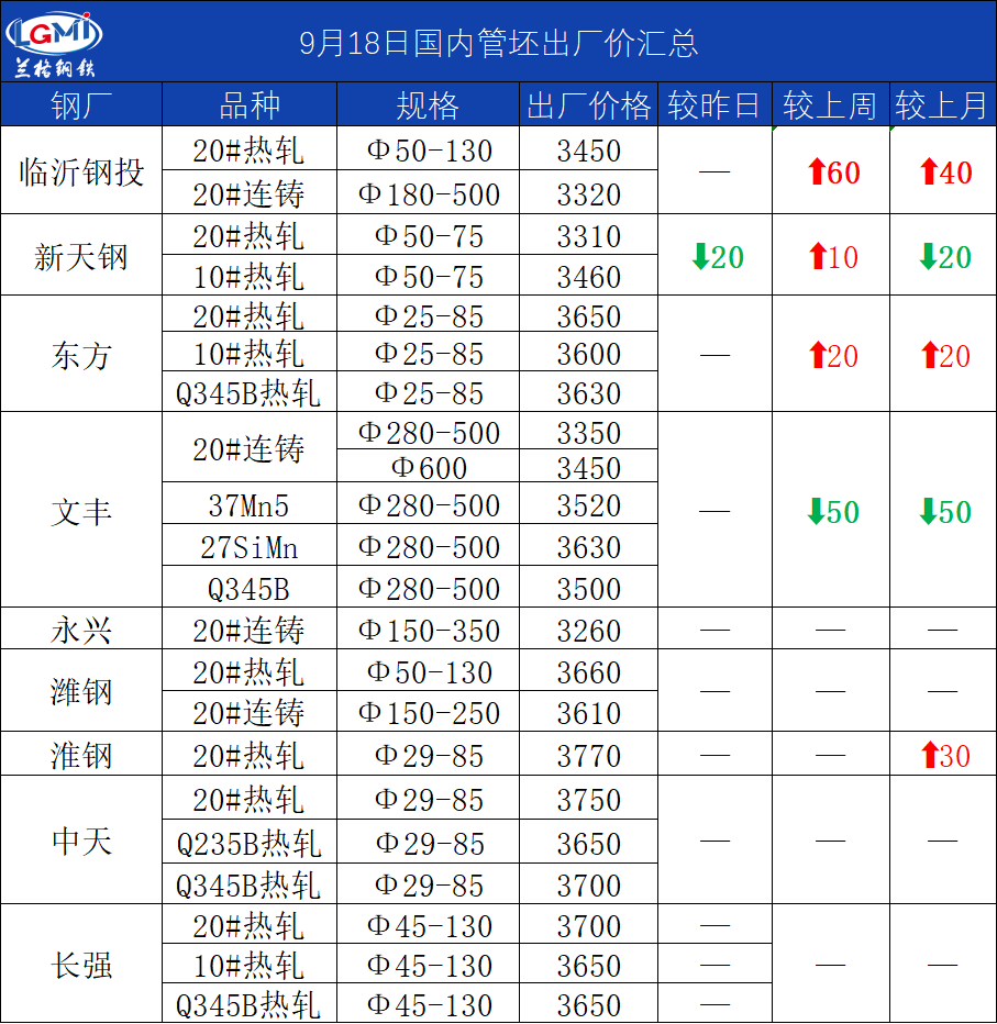 • 9月18日(11:00)主导钢厂20#热轧管坯出厂价