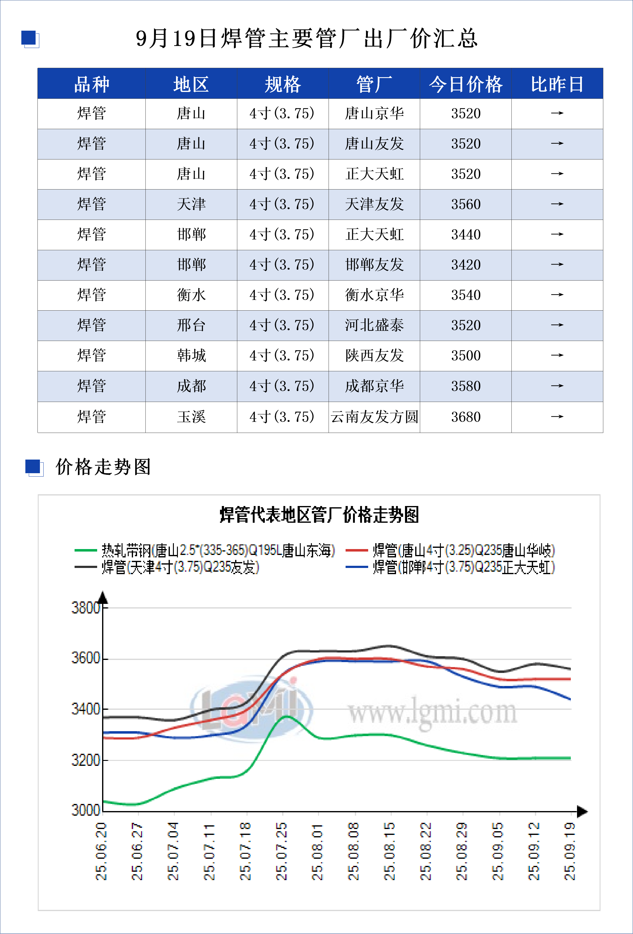 • 9月17日主流焊接钢管及上游品种出厂价格汇总