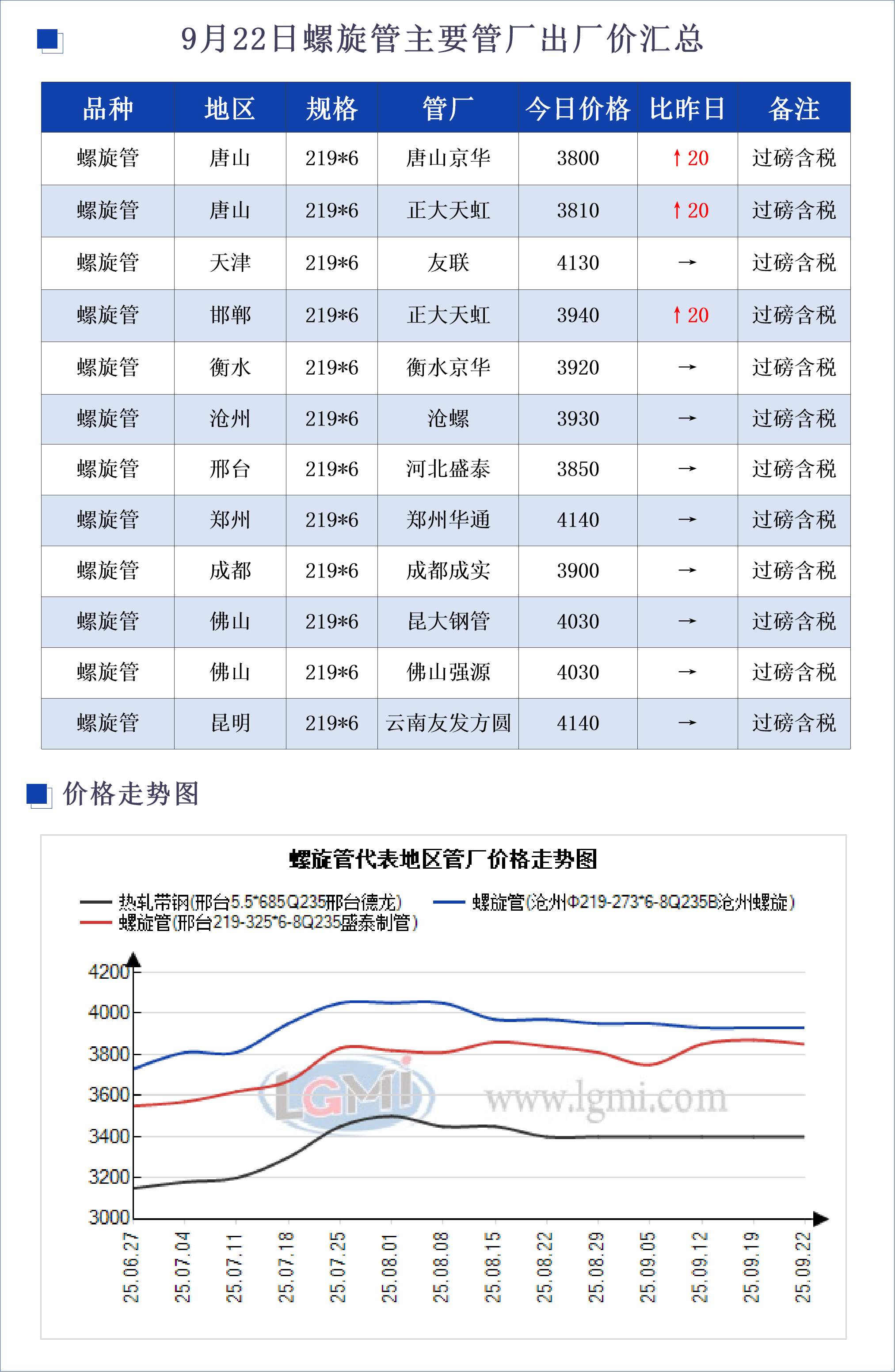 • 9月22日螺旋管主要地区管厂出厂价汇总