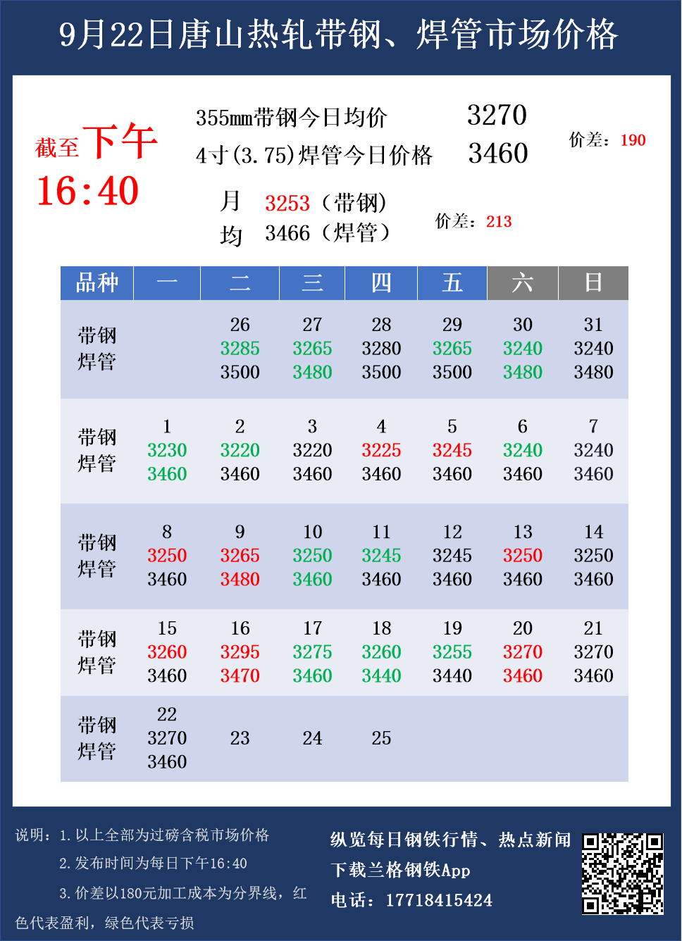 9月22日(16:40)唐山热轧带钢与焊管市场成交价格