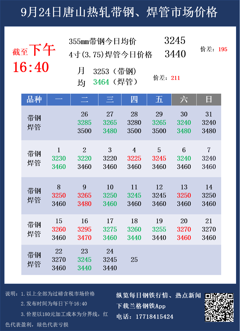 • 9月24日(16:40)唐山热轧带钢与焊管市场成交价格