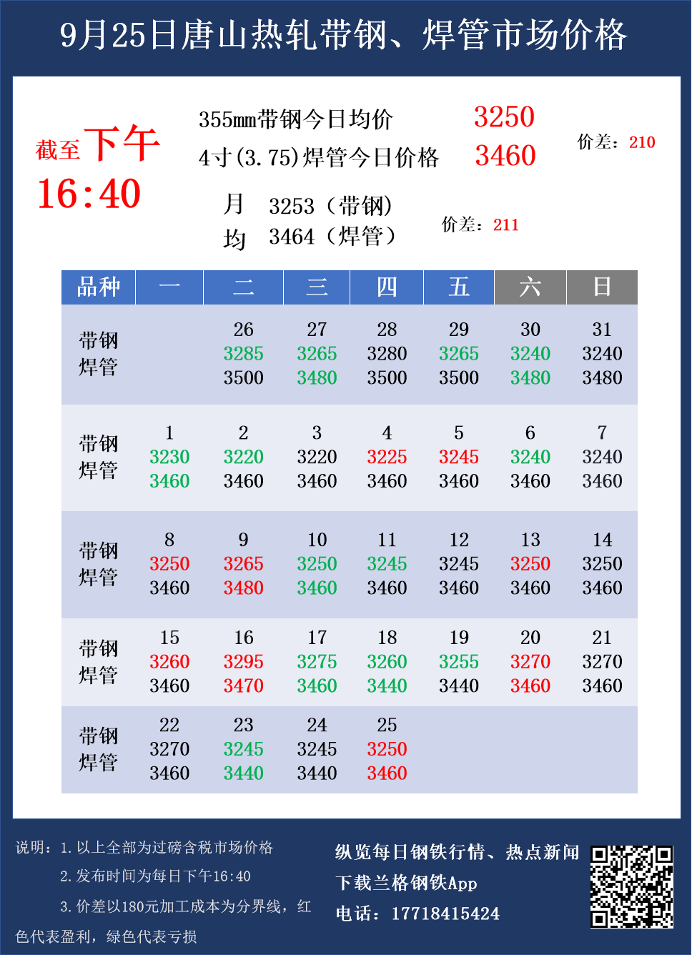 • 9月25日(16:40)唐山热轧带钢与焊管市场成交价格