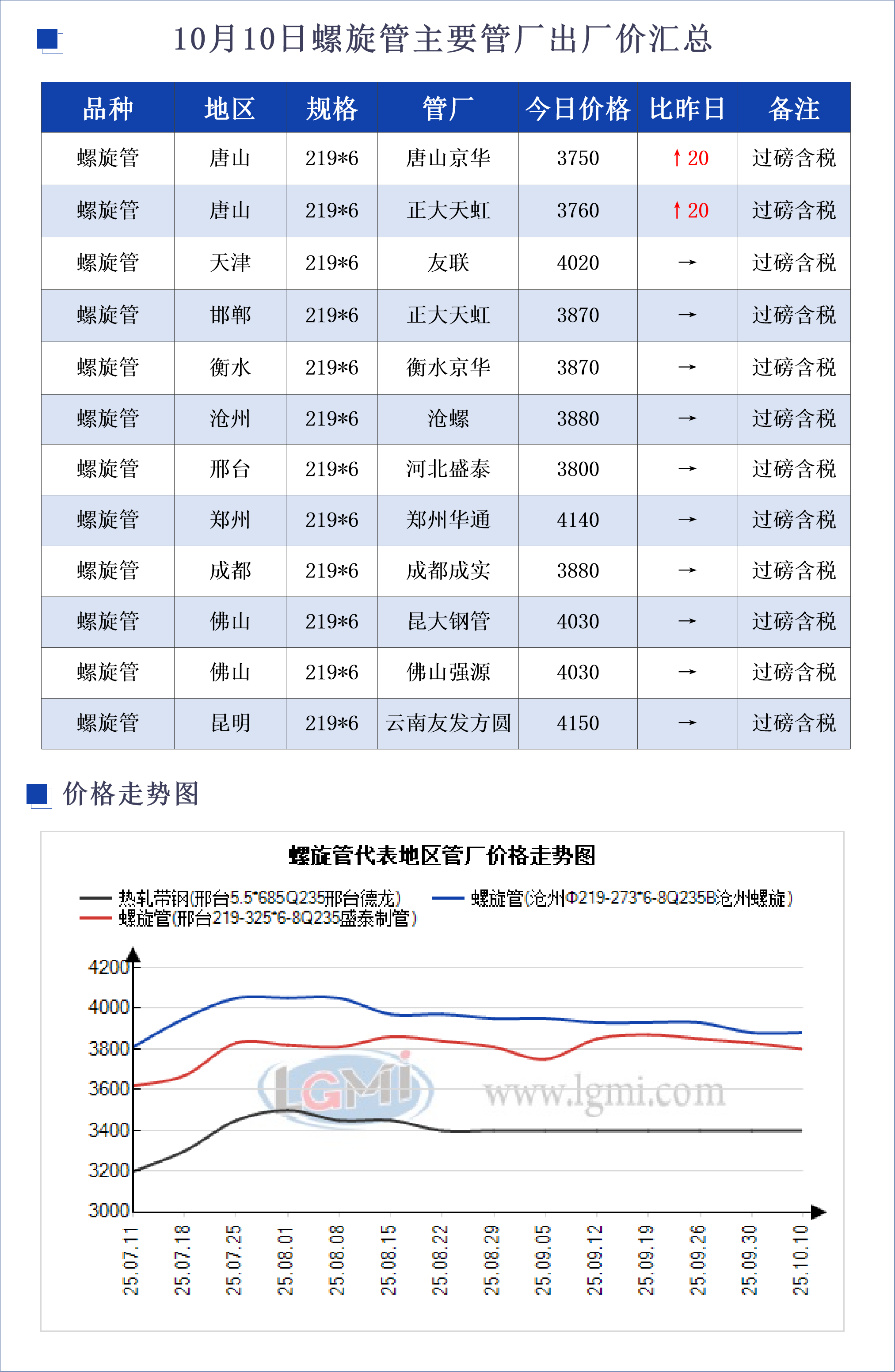 • 10月10日螺旋管主要地区管厂出厂价汇总