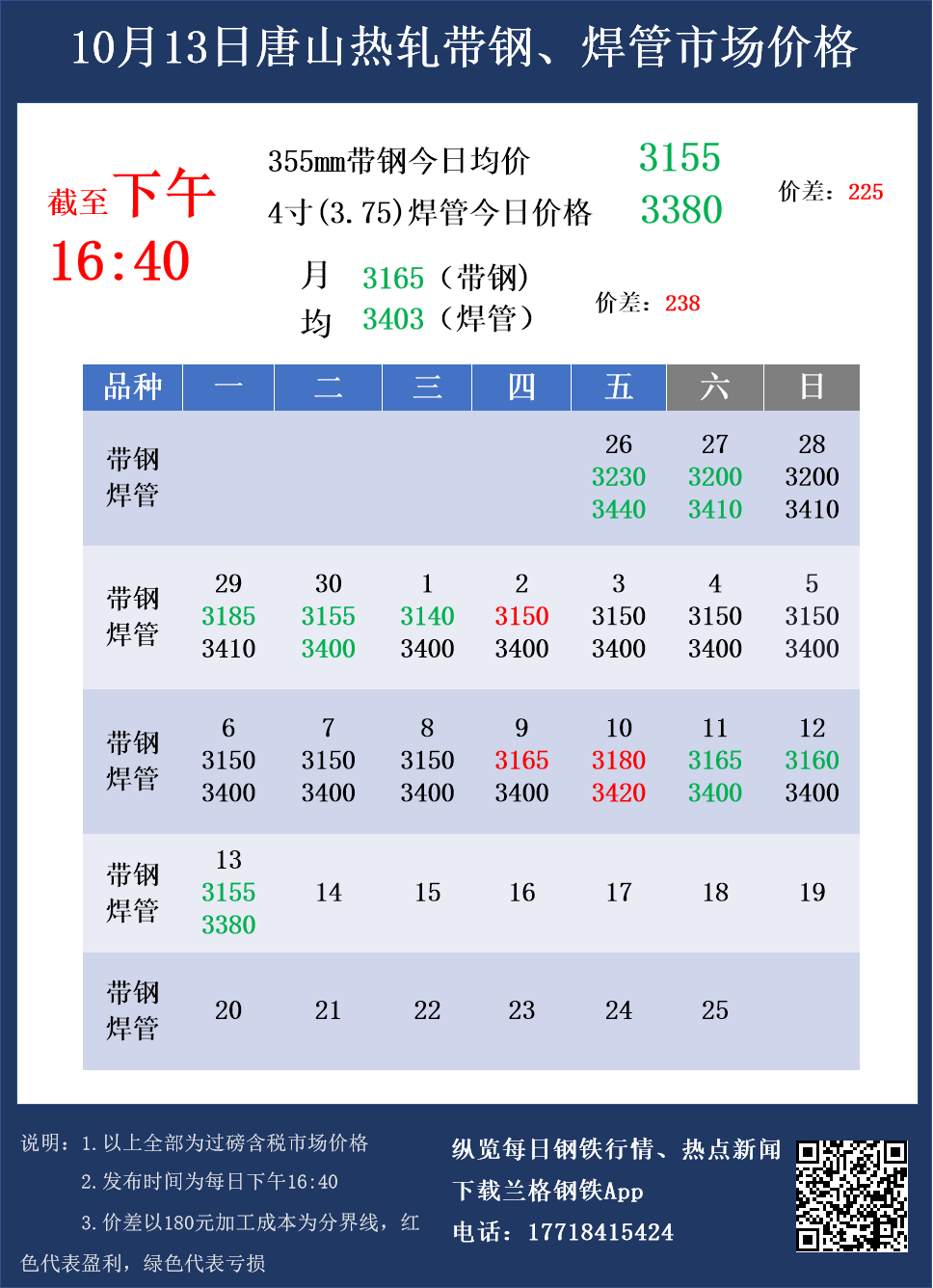 10月13日(16:40)唐山热轧带钢与焊管市场成交价格
