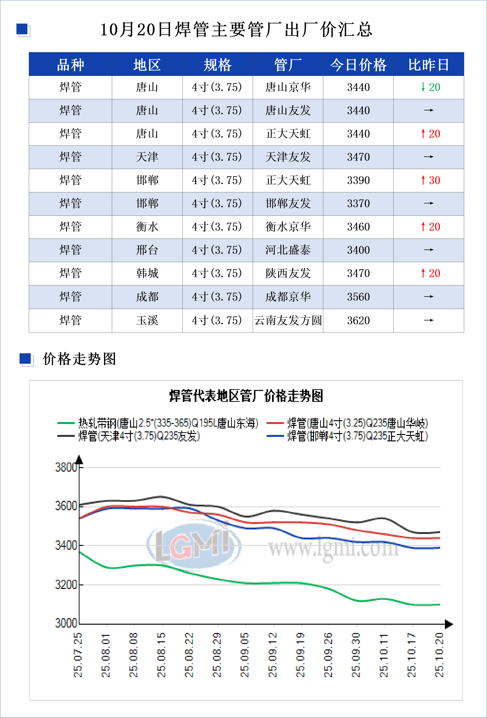 • 10月16日主流焊接钢管及上游品种出厂价格汇总