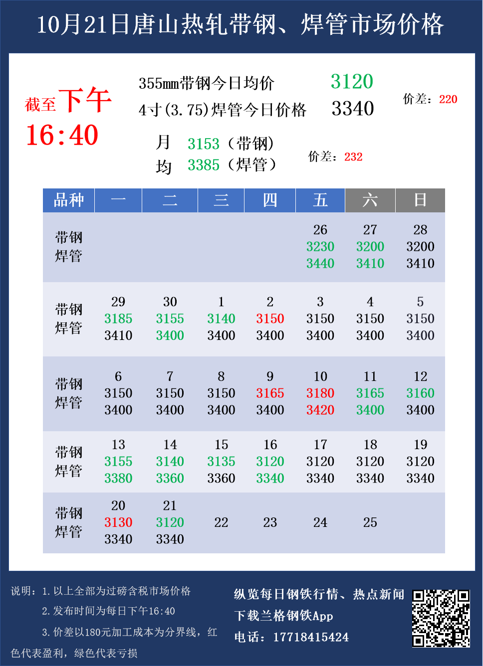 • 10月21日(16:40)唐山热轧带钢与焊管市场成交价格