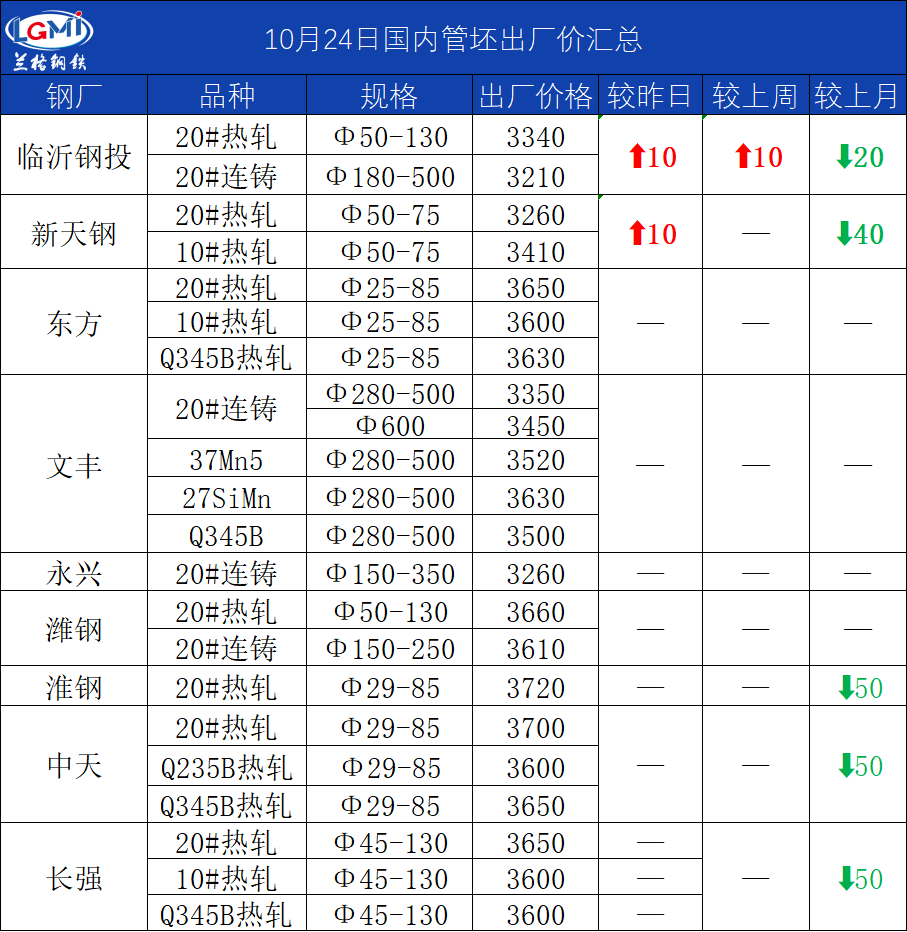 • 10月24日(11:00)主导钢厂20#热轧管坯出厂价