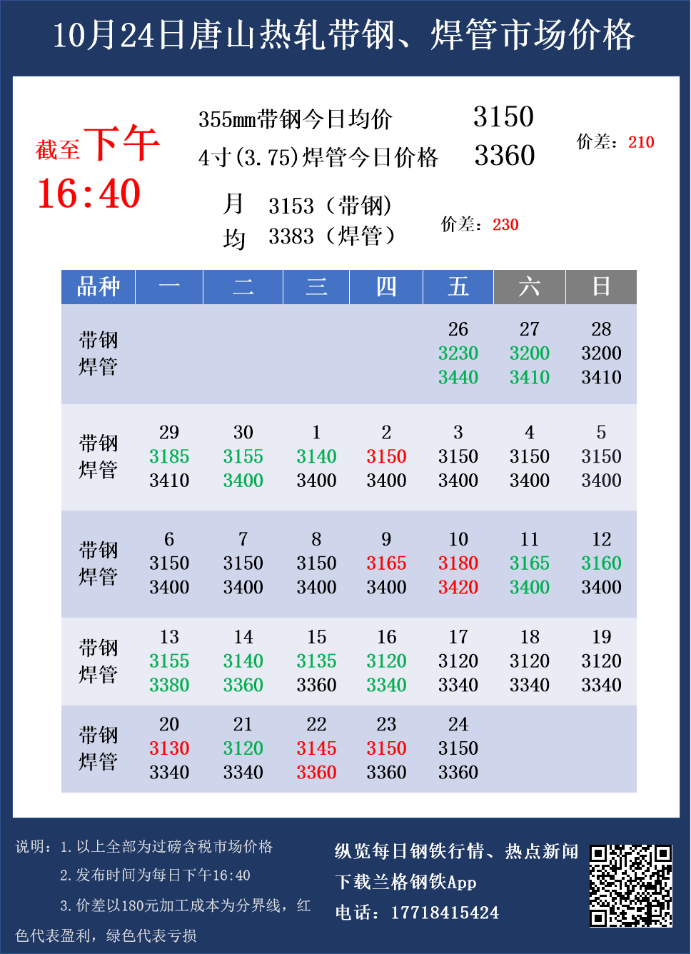 • 10月24日(16:40)唐山热轧带钢与焊管市场成交价格
