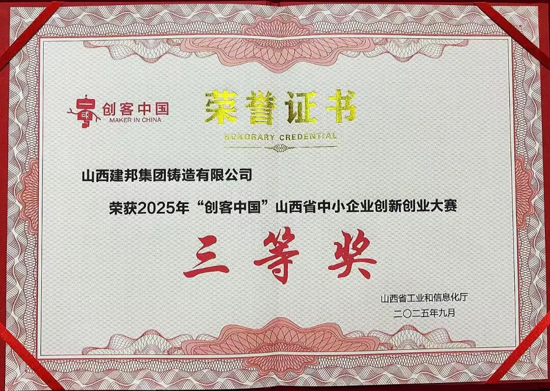 近日,从山西省“科创中国”系列赛事活动现场传来捷报,山西建邦集团铸造有限公司参赛项目凭借其创新性、实用性与显著潜力,在众多优秀项目中脱颖而出,荣获大赛三等奖。这一荣誉不仅是对建邦集团铸造公司科技创新实力的权威认可,更是公司坚定不移走“科技强企”之路的生动实践。 “科创中国”系列赛事是山西省推动科技与经济深度融合、激发企业创新活力的重要平台。本次大赛汇聚了全省各领域的顶尖科技企业与创新团队,竞争激烈。建邦集团铸造公司参赛团队经过精心准备、层层选拔,最终在决赛现场通过精彩的项目陈述和扎实的技术成果,赢得了评委专家的一致好评,成功将三等奖项收入囊中。