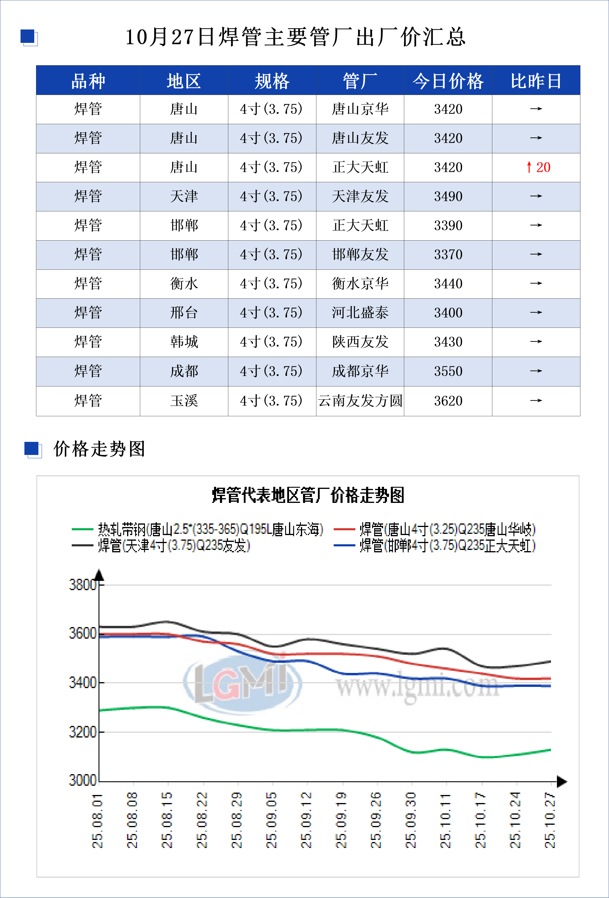 • 10月24日主流焊接钢管及上游品种出厂价格汇总