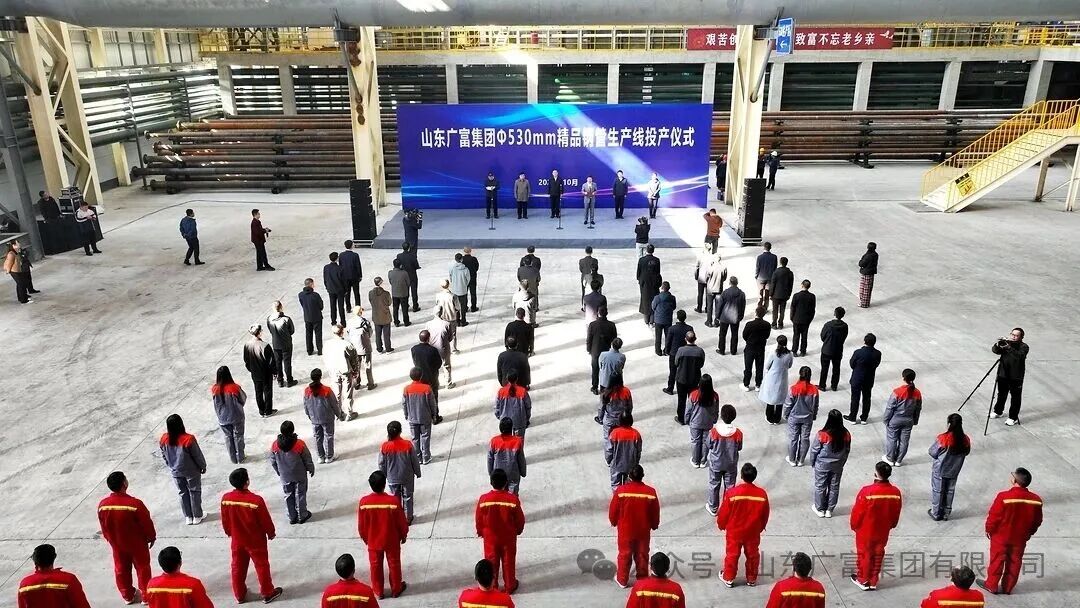 投产仪式上,张向海代表广富集团对各级领导莅临现场表示欢迎,他介绍,集团始终以科技创新为核心驱动力,紧抓产业升级机遇,全力推进数字化、智能化转型。此次投产的530生产线总投资5亿元,采用国际先进的Assel斜轧管工艺,专注于海工用高性能特种精品钢管研发生产,可产出φ310-630mm、壁厚26-180mm的高端产品。投产后将实现年产13万吨海工用高性能材料,预计年创产值50亿元、利税1亿元,带动就业1000余人,为地方经济发展注入强劲动能。