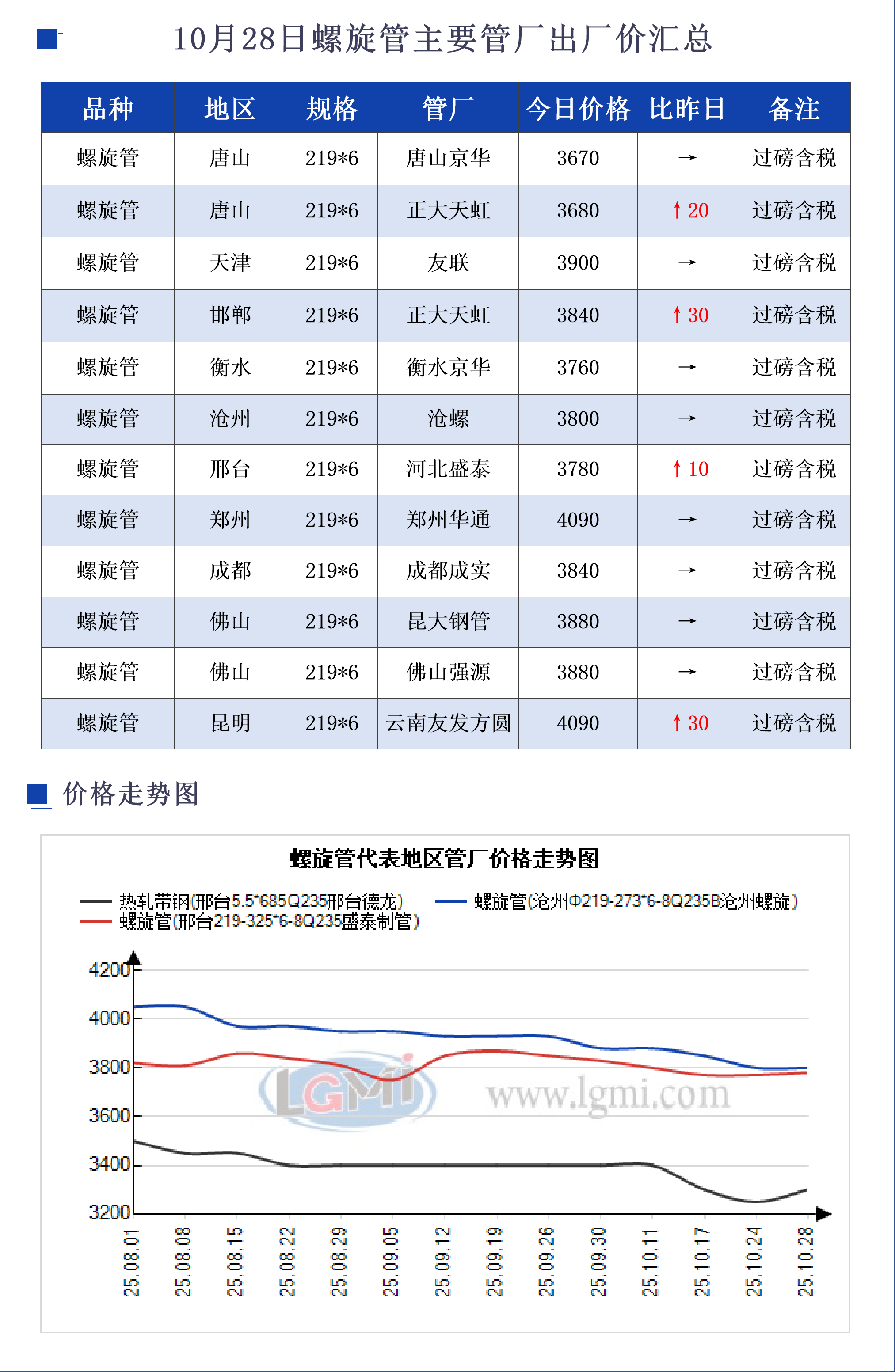 • 10月28日螺旋管主要地区管厂出厂价汇总