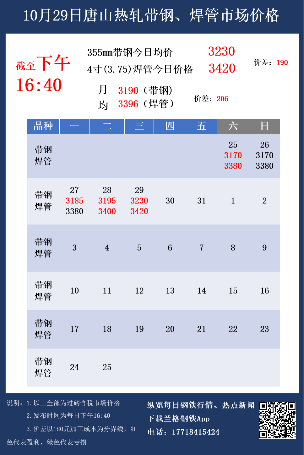 10月29日(16:40)唐山热轧带钢与焊管市场成交价格