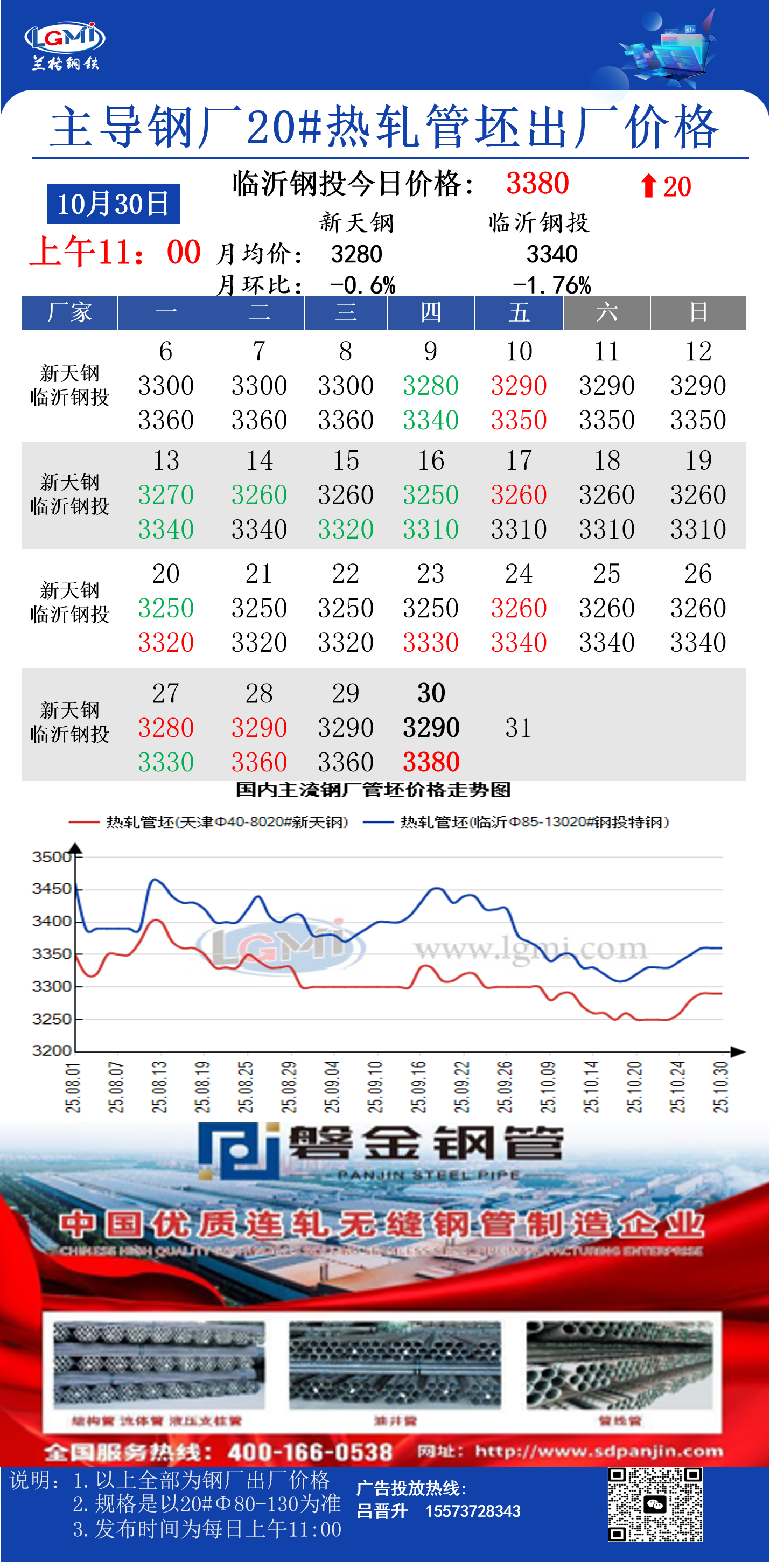 • 10月30日(11:00)主导钢厂20#热轧管坯出厂价