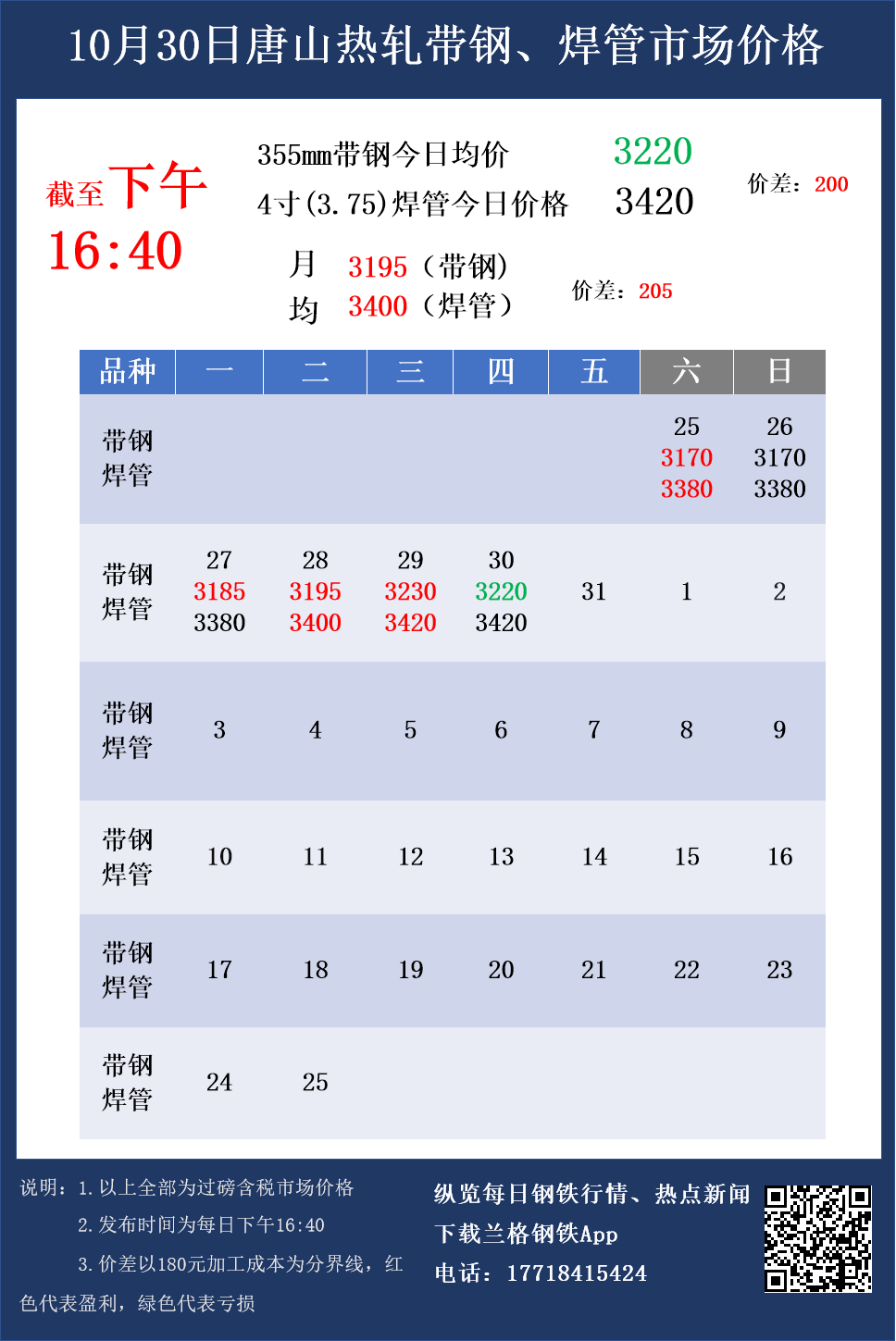 • 10月30日主流焊接钢管及上游品种出厂价格汇总