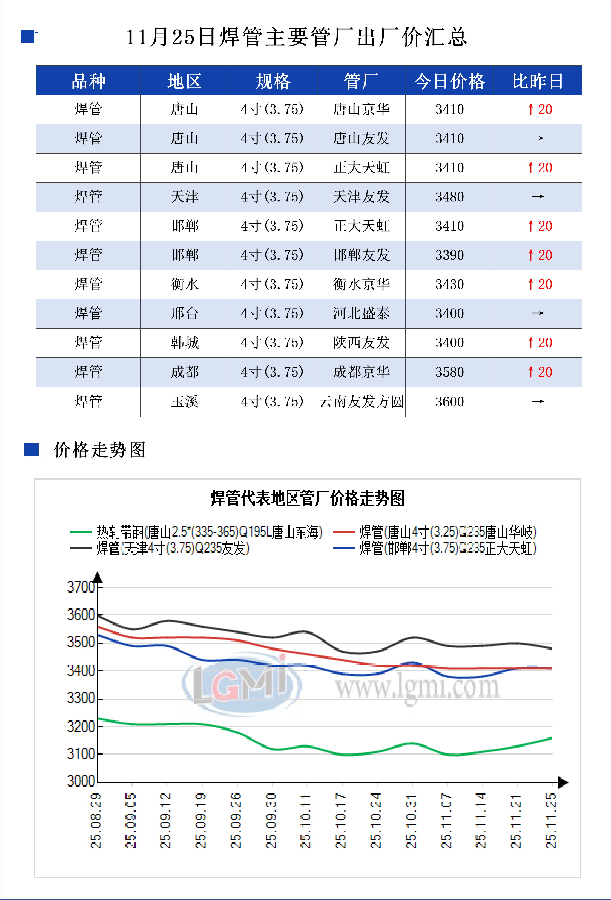 • 11月25日天津友发钢管集团股份有限公司第一分公司出厂价上调20元