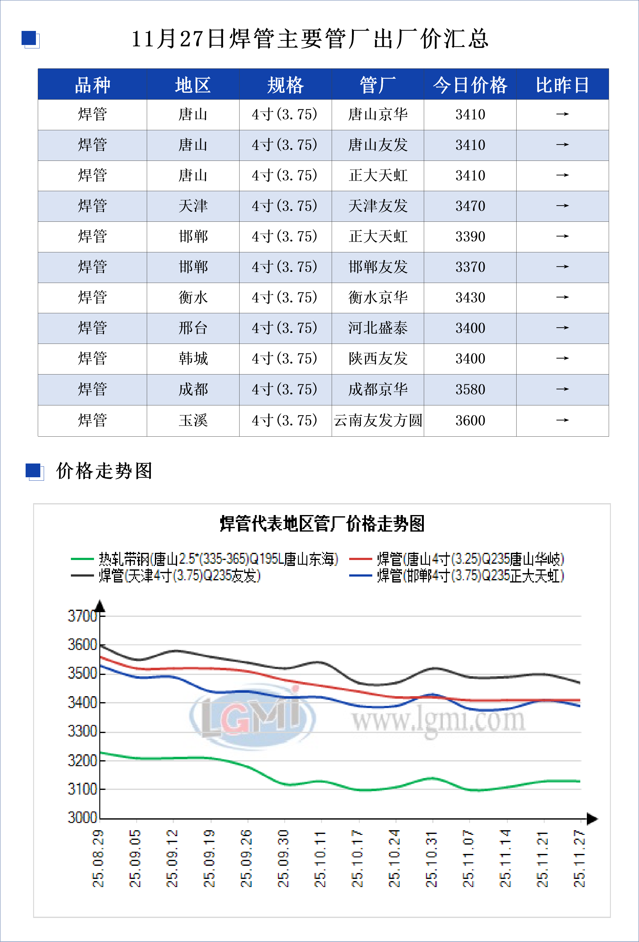 • 11月25日天津友发钢管集团股份有限公司第一分公司出厂价上调20元