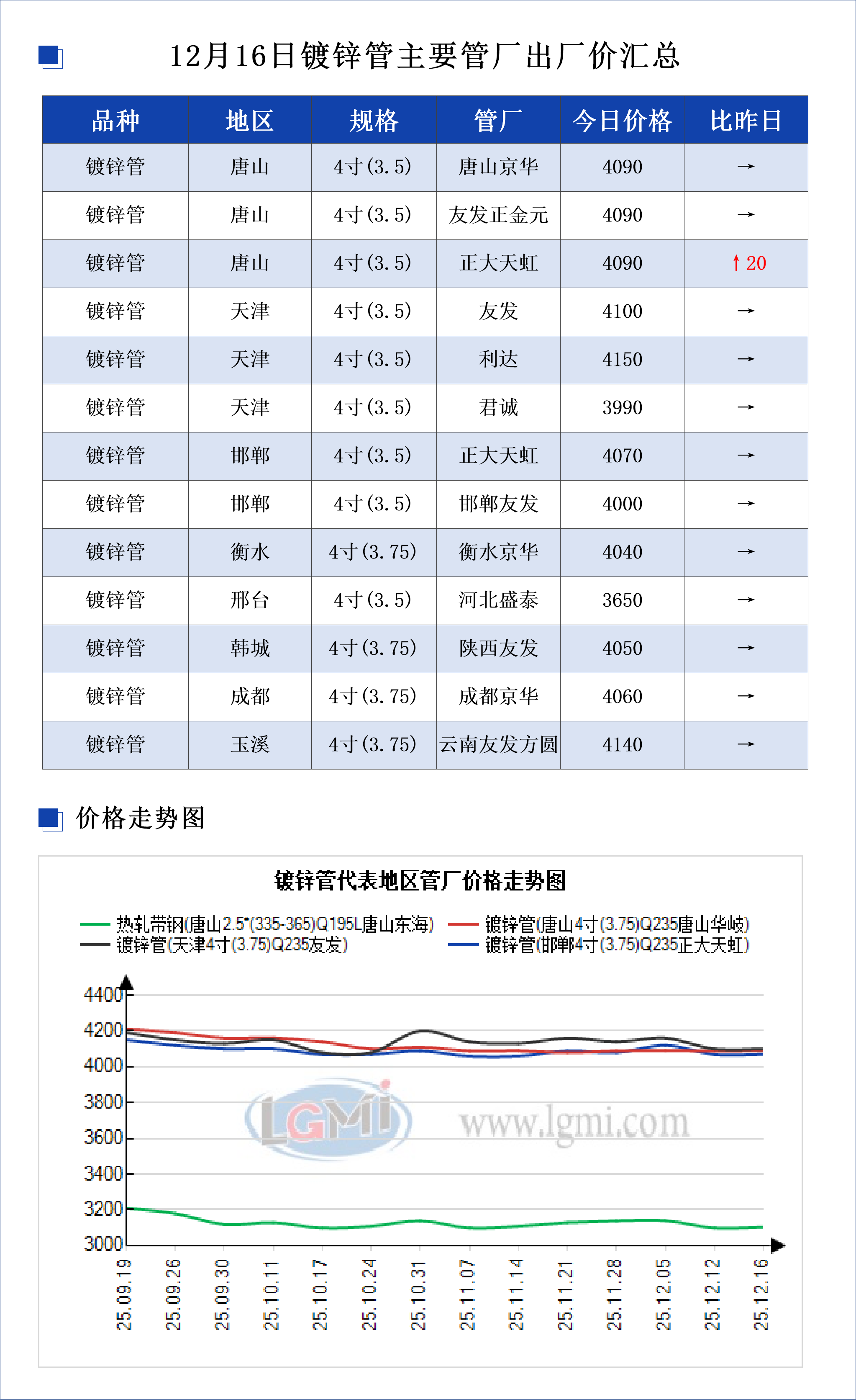 • 12月16日镀锌管主要管厂出厂价汇总