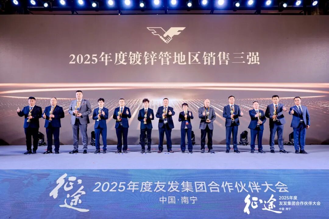 镀锌圆管全国销售二十强 向下滑动查看更多 2025年度友发集团合作伙伴颁奖典礼 对于合作伙伴普遍关心的:新形势下如何轻装上阵、提升盈利能力。友发集团新任的营销副总经理张广志在《征途 —保存量,扩增量,打赢增利之战》的演讲中,直击合作伙伴关注的核心问题,抛出提升份额保存量、拓宽品类增利润的七大核心行动,以“组合拳”形式助力合作伙伴打赢“增利之战”。