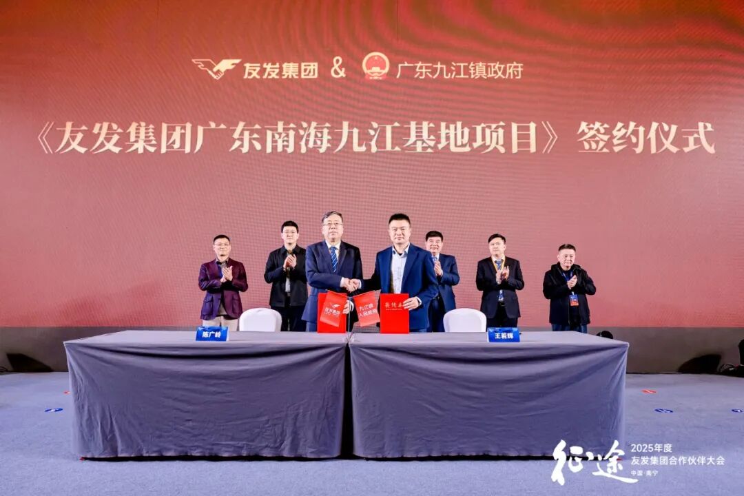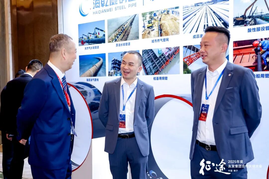 河北海乾威钢管 总经理 申立群 在友发集团董事长李茂津等集团相关负责人、两广地区大友发重要合作伙伴的共同见证下,友发集团总经理陈广岭先后与九江镇党委委员王若辉签约《友发集团广东南海九江基地项目》,与佛山双正投资有限公司总经理苏兵建、云南友发方圆董事长马丽波签署《广西、广东螺旋钢管项目全面合作协议》和《广西友发昆大管道与广东昆大管道委托加工协议》。这也标志着,友发集团在产能空间布局和产品矩阵完善方面不断提速,行业竞合协同发展价值生态圈不断扩大。